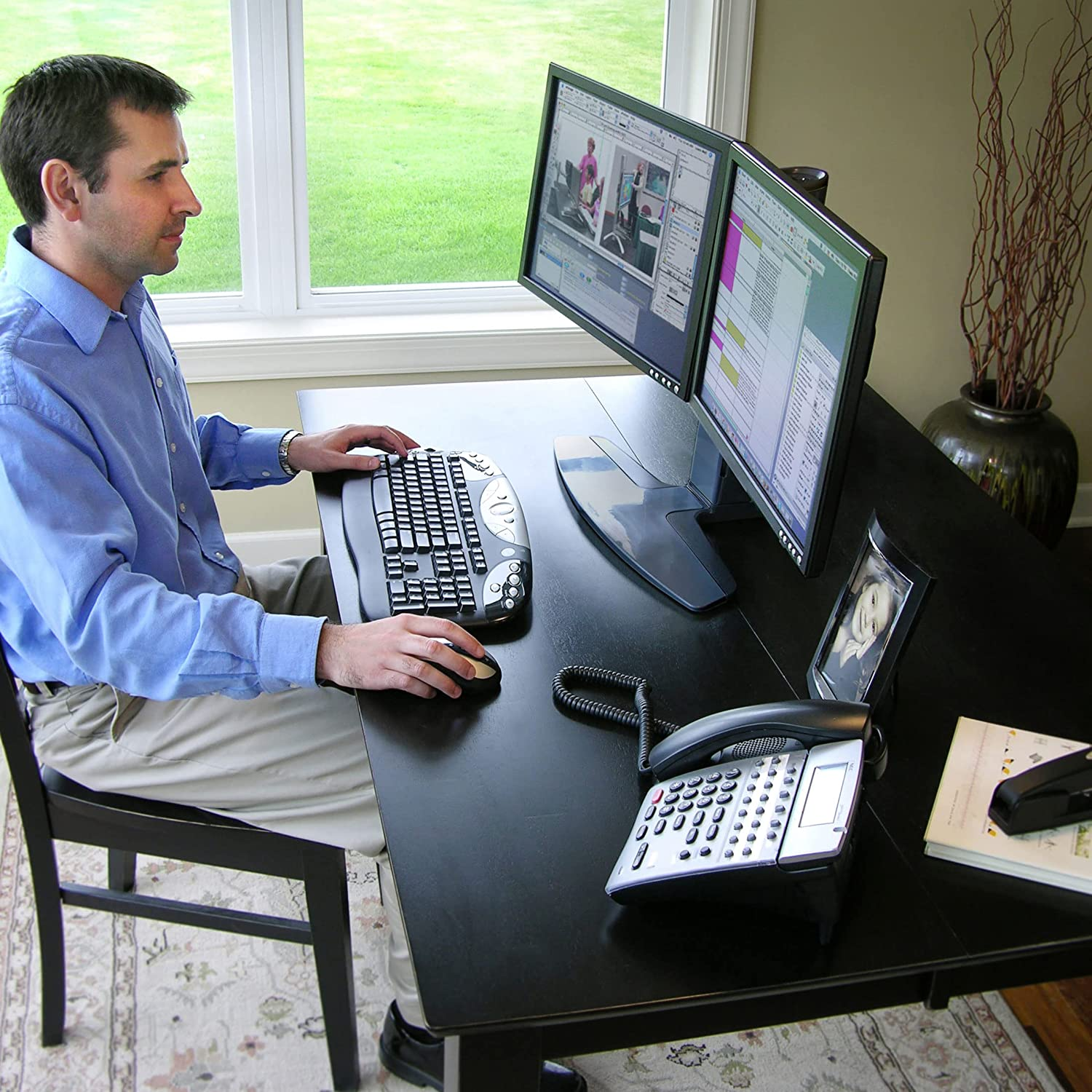 - Double up your productivity and comfort with a two-screen stand for monitors up to 24 inches (62 centimeters) and some up to 26 inches (66 centimeters); small footprint gives you more room to work and leaves a small impact on your wallet