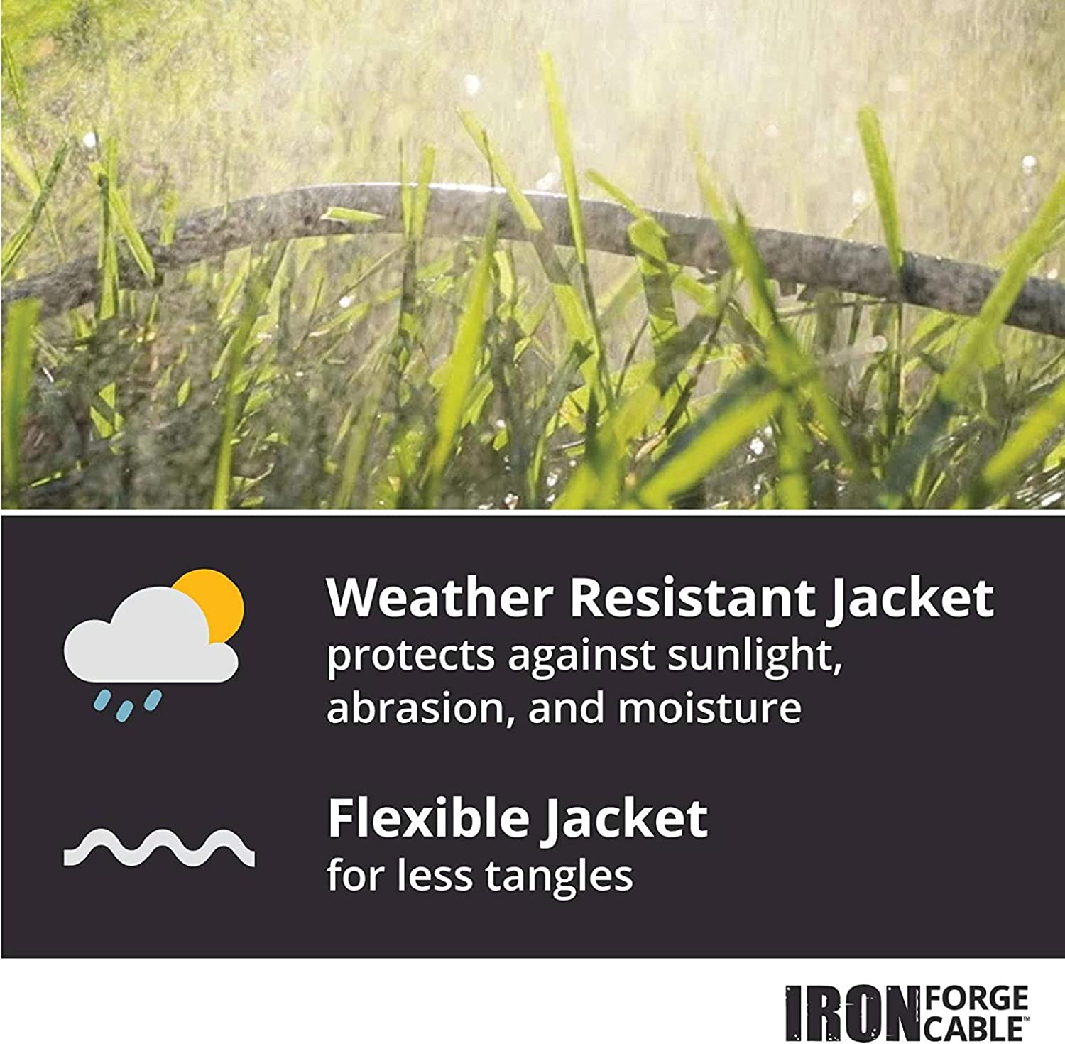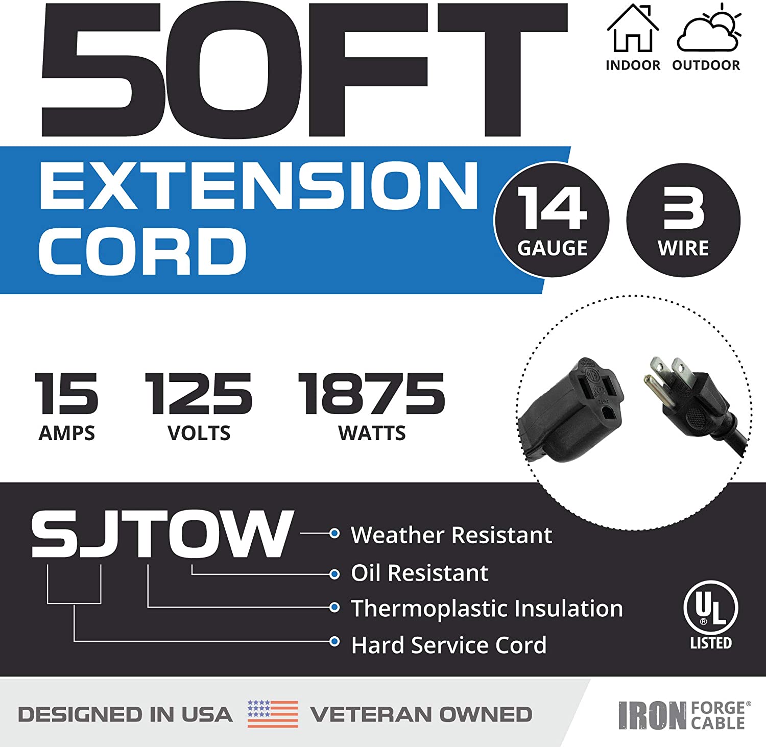 Iron Heavy Duty Extension Cord with 3 Electrical Power Outlets - 50FT / 15M