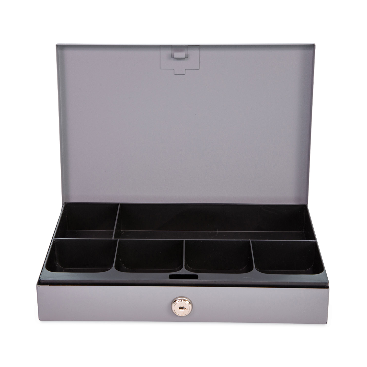 Heavy Duty Low Profile Cash Box, 6 Compartments - Gray