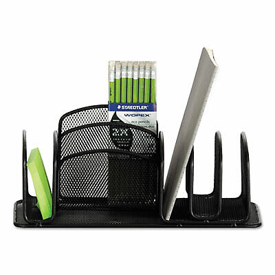 Maximize your desktop space with this incredibly efficient organizer. Keep supplies stored neatly off your desk but within arm's reach. Features compartments for message and sticky note pads, envelopes, pens, pencils and more. Steel mesh construction. Number of Compartments: 6.