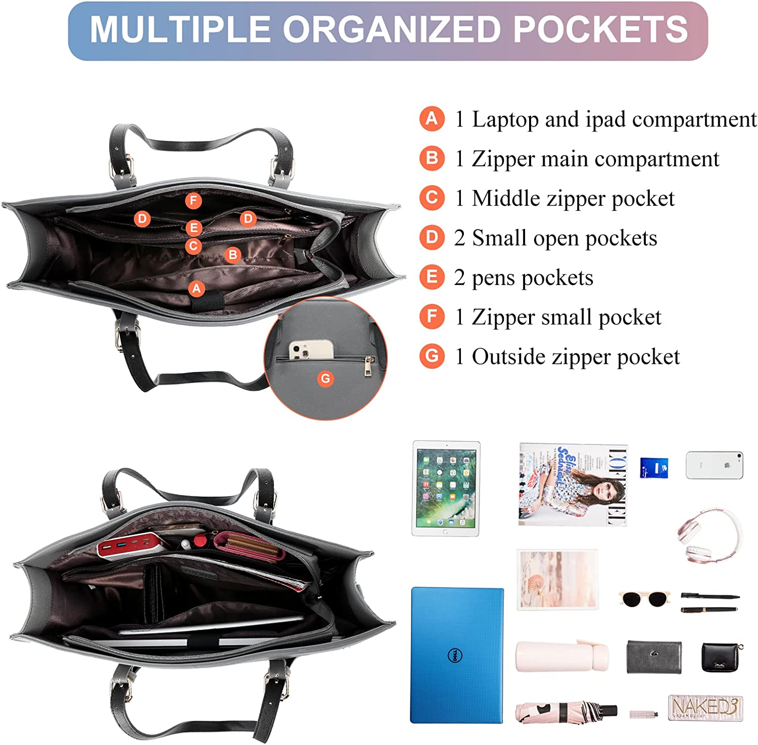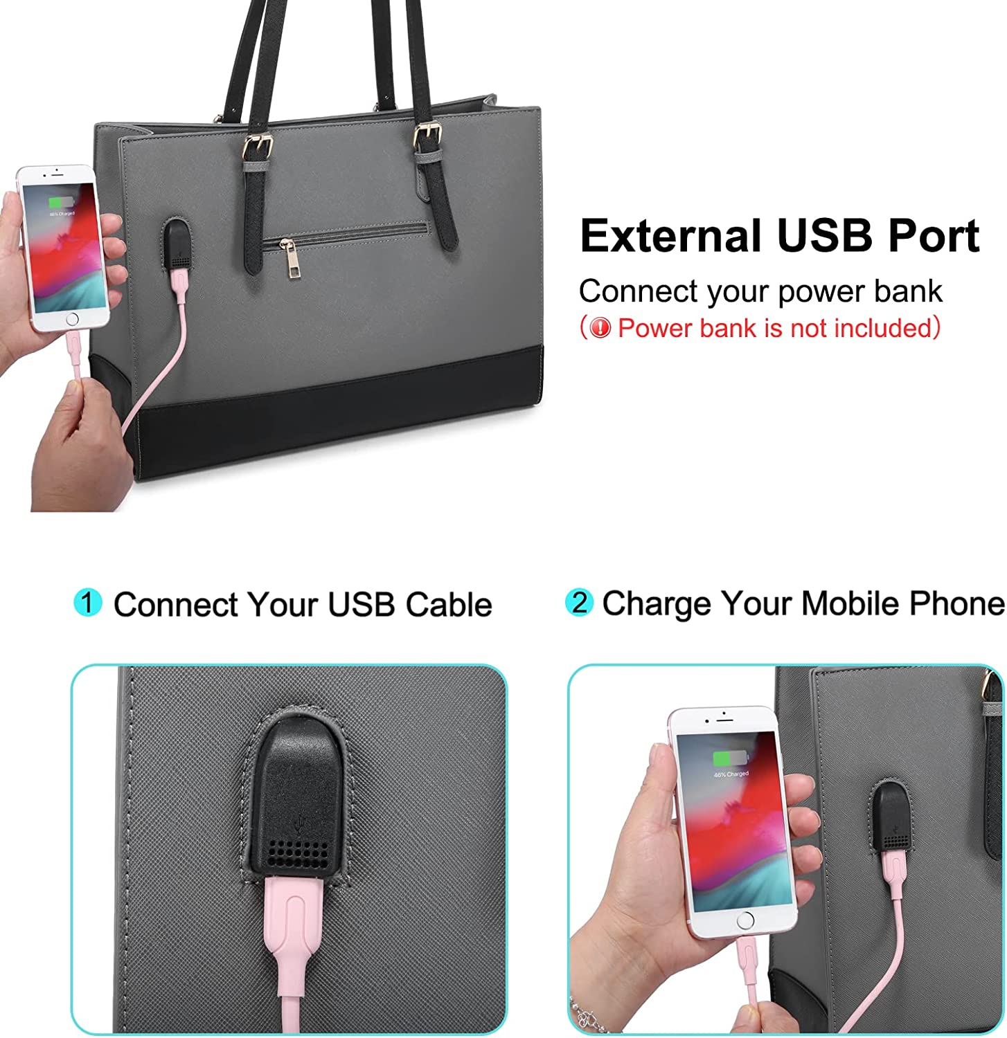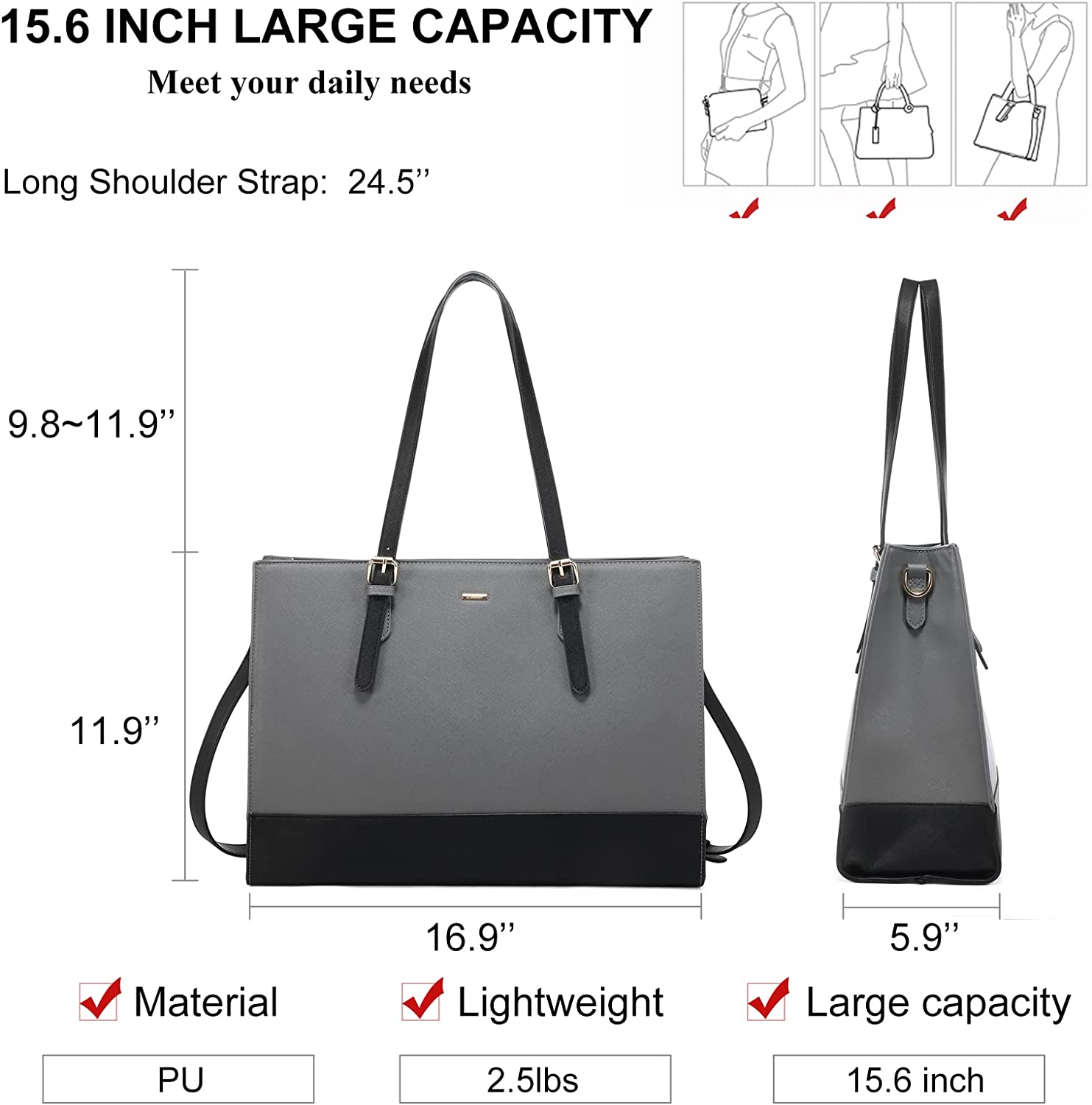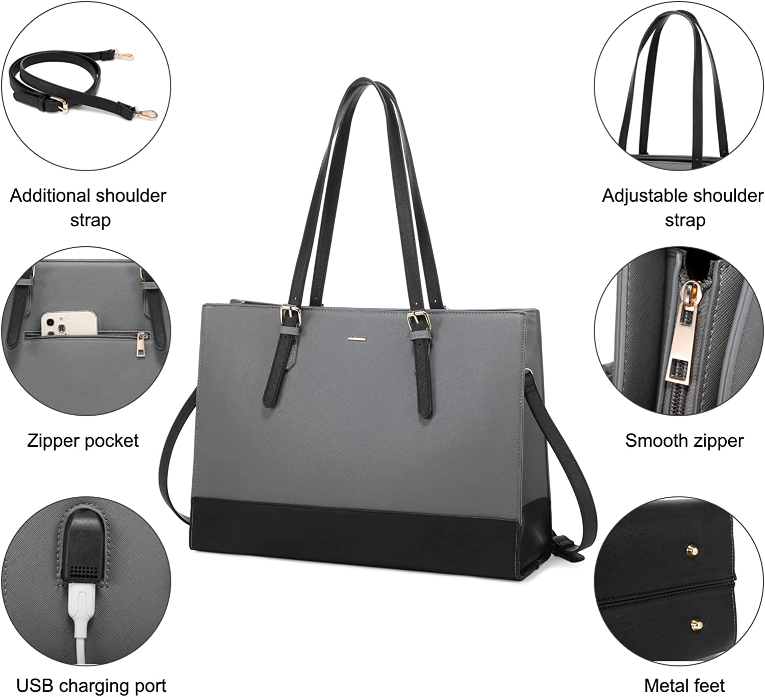 - Adjustable Shoulder Strap: The laptop tote bag for women comes with adjustable shoulder strap and additional shoulder strap. Adjust the shoulder strap to right length or additional shoulder strap can function as a shoulder or crossbody strap.