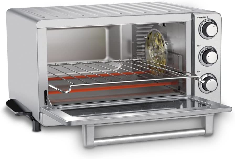 Cuisinart® brings a classic approach to modern cooking with the Toaster Oven Broiler with Convection. The industrial stainless steel styling, and the 0.6 cu ft. capacity – large enough to fit a 12” pizza or 6 slices of toast – make this countertop oven a valuable addition to any kitchen. This multi-functional oven can bake, broil, toast, warm, convection bake and convection broil to perfection with a glass window allowing you to monitor the cooking progress without opening the door. Clean up is easy thanks to the interior nonstick coating and the removable crumb tray.