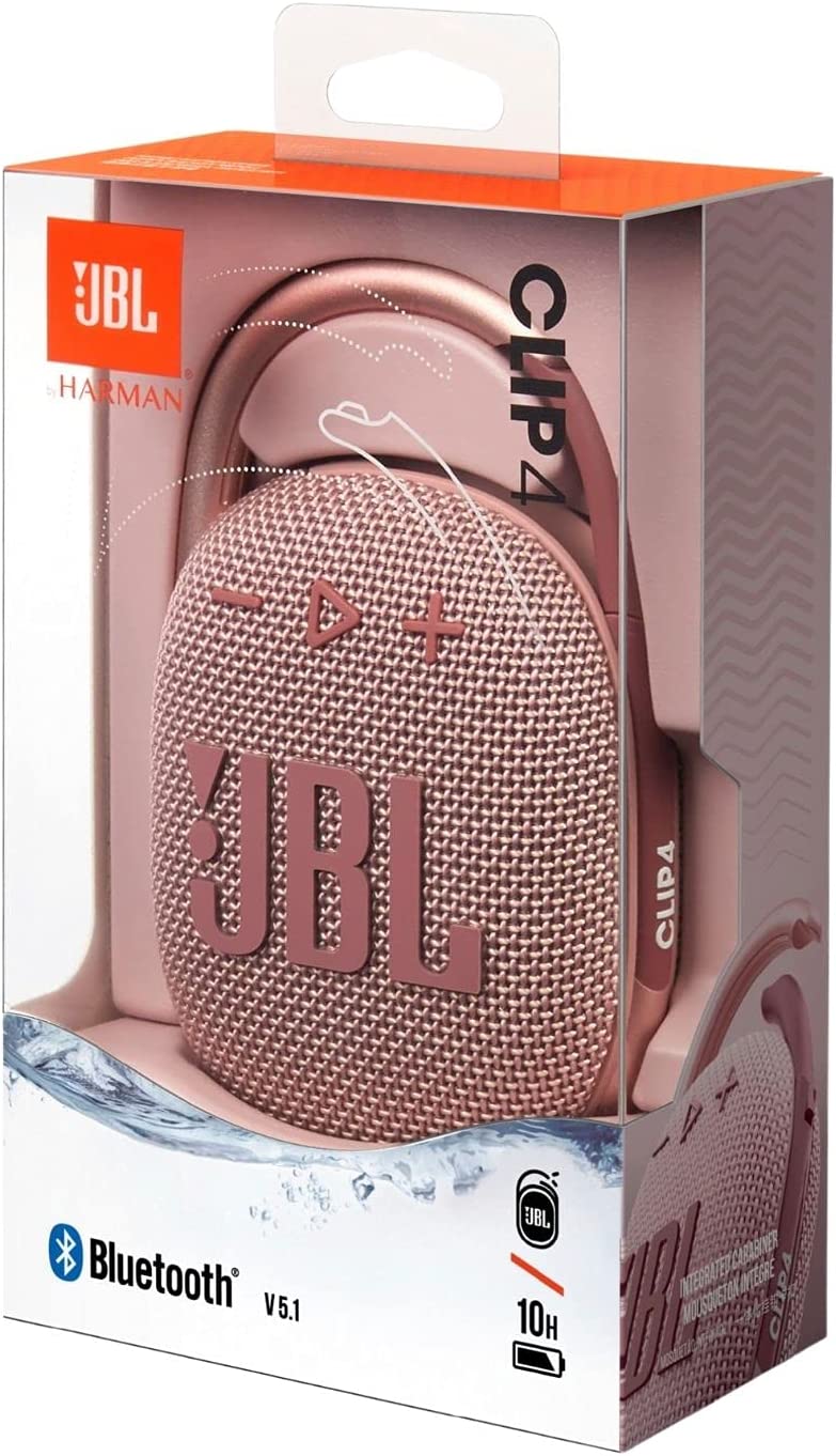 Bring the party nearly anywhere you go with the pink JBL Clip 4 Portable Bluetooth Speaker. With a built-in carabiner and rechargeable battery that lasts up to 10 hours, you can clip the speaker to your bag, belt loop, or whatever else is handy and stream music, podcasts, and more wirelessly via Bluetooth as you travel. Its IP67 rating means it's waterproof and dustproof, so it's safe at the beach or poolside, even if it rains or gets splashed. It outputs up to 5W from its 1.5" driver.