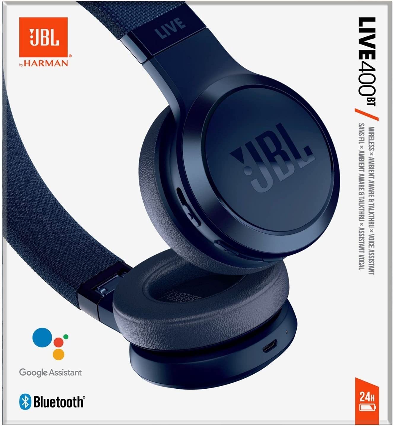 JBL LIVE 400BT On-Ear Wireless Headphones - Blue