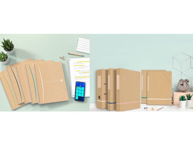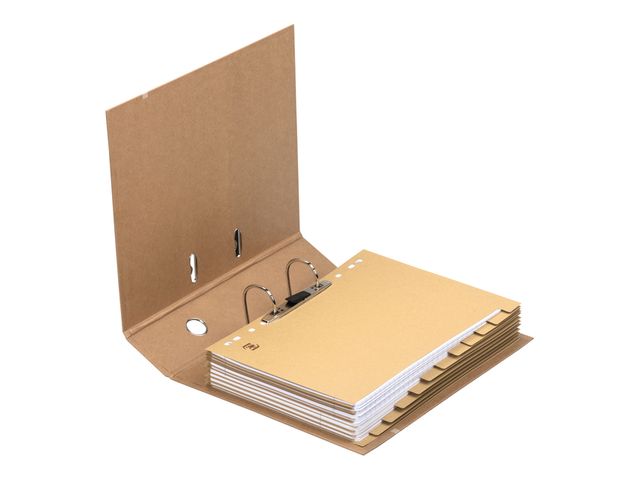 The sustainable Touareg range is made from recycled material. Touareg is a modern range with a sleek and elegant design and made of sturdy cardboard. The kraft color in combination with natural tones makes storage easier. The vegetable inks and the PEFC certification guarantee sustainable forest management by limiting the impact on the environment. The Touareg ring binder has a spine width of 80mm and a self-adhesive spine label.