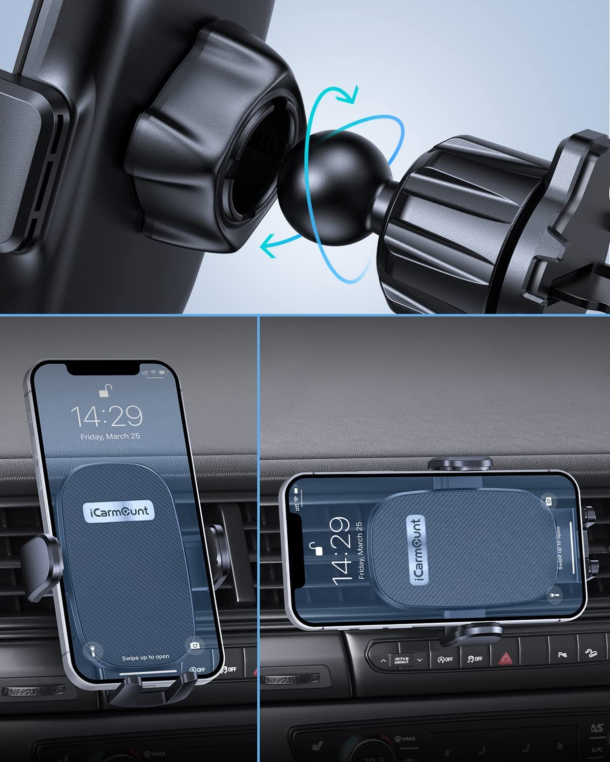 iCarMount Car Phone Holder Mount - Air Ventilated