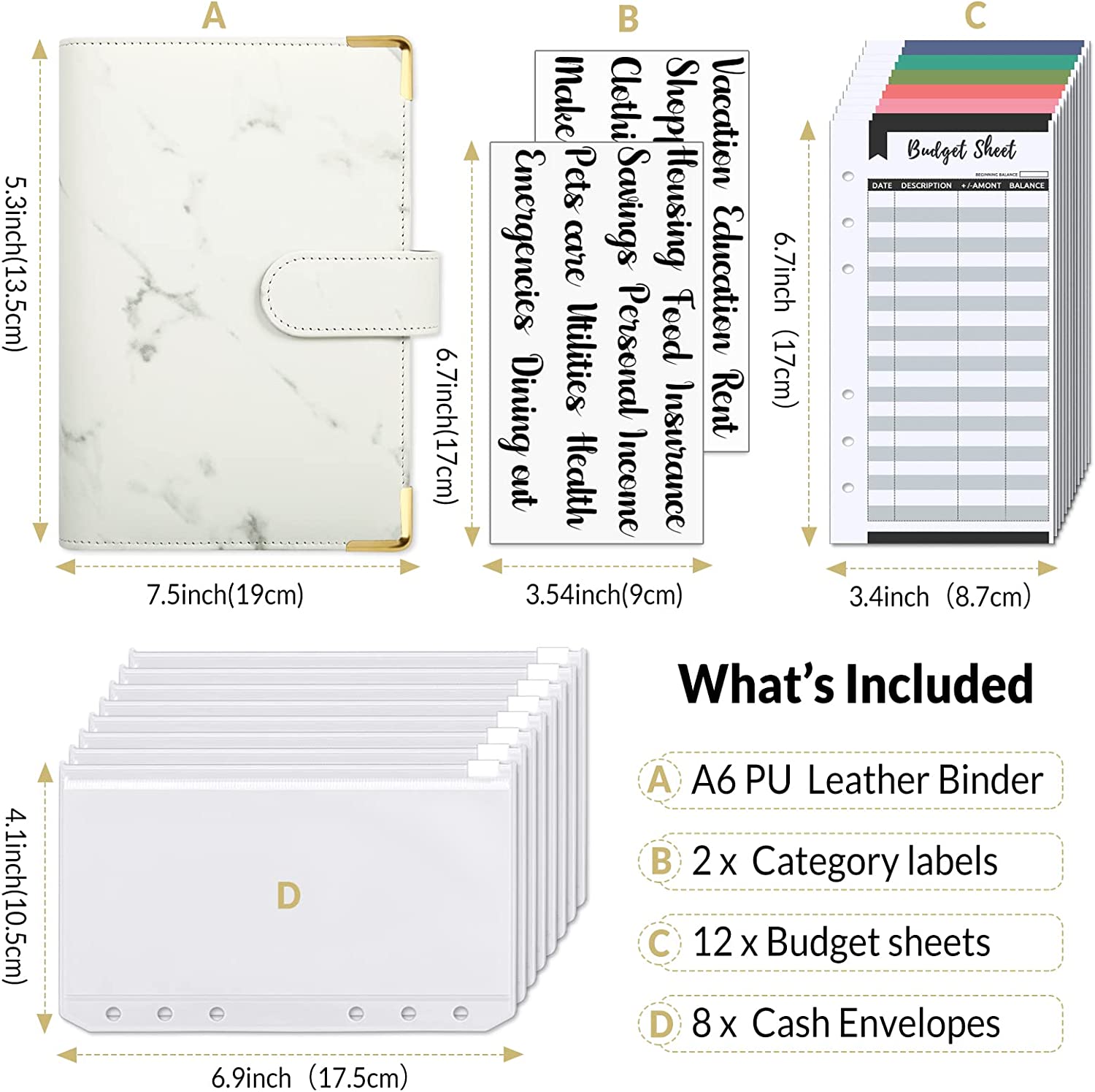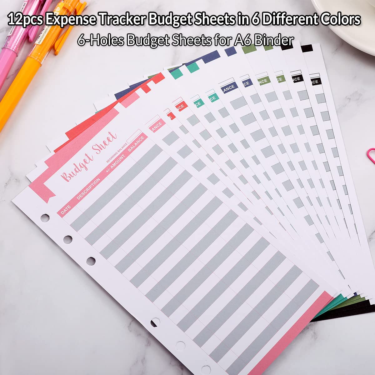saving binder,8pcs A6 6-holes binder pockets,12pcs expense budget sheets,2