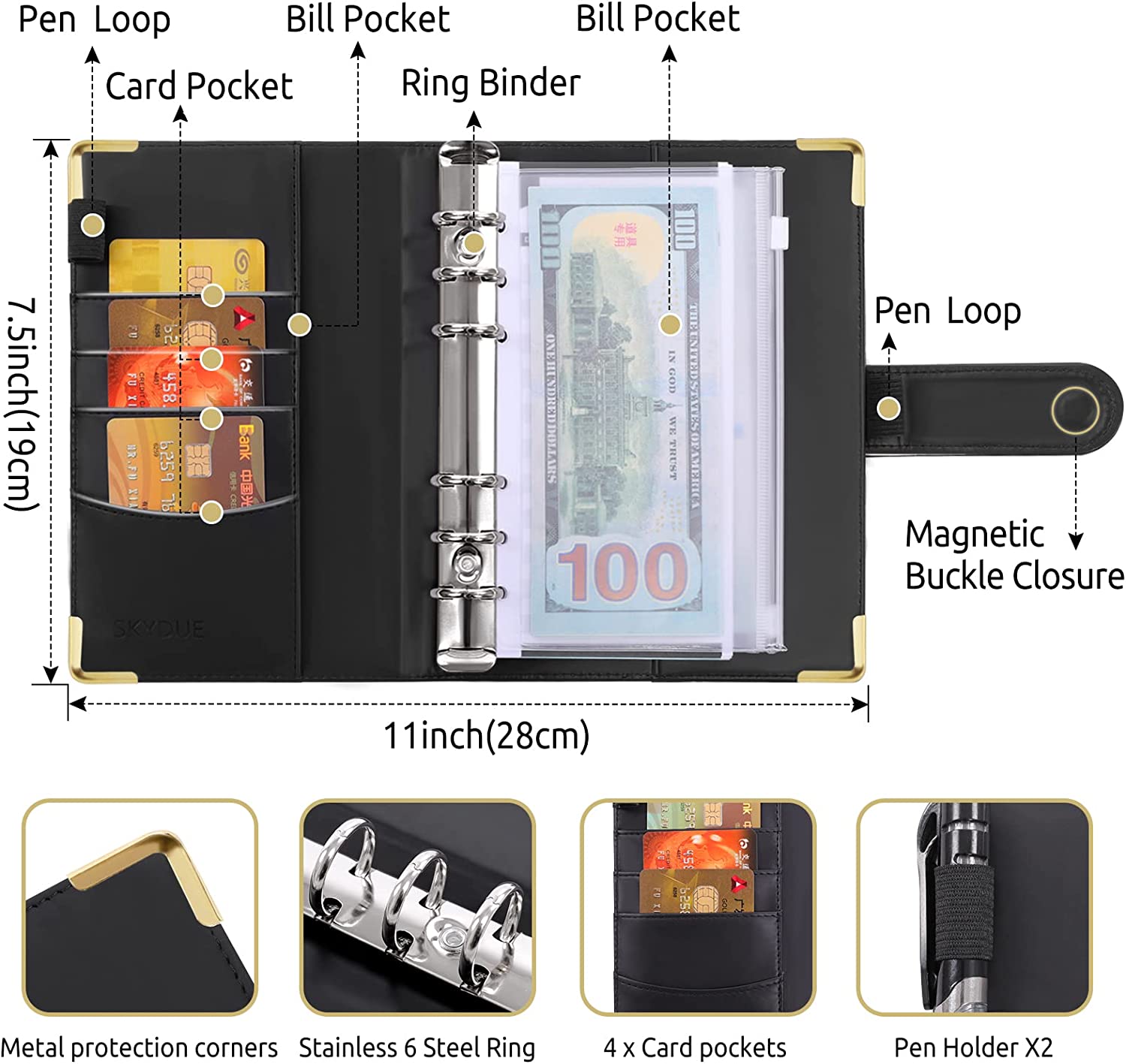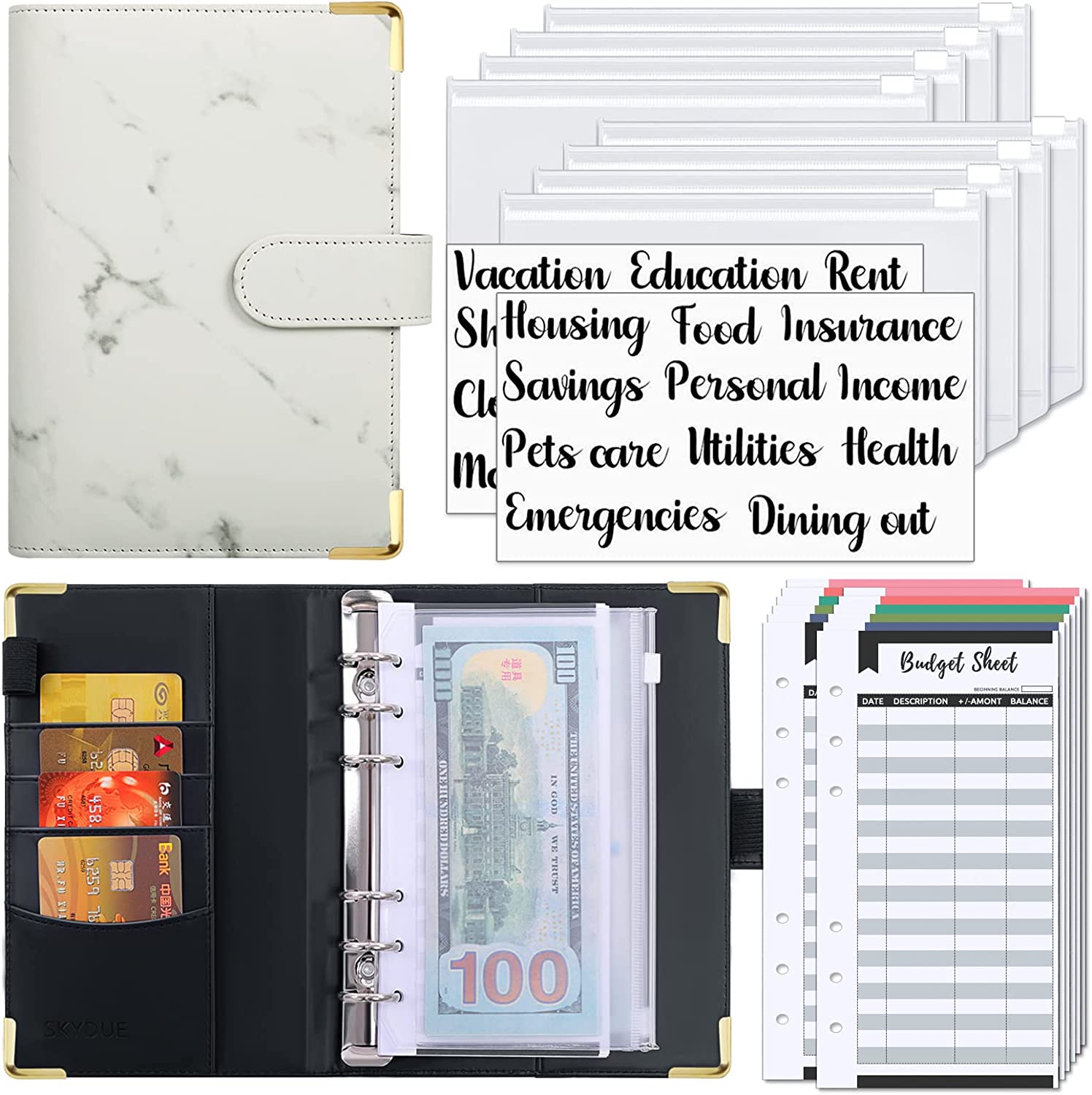 SKYDUE Budget Binder with Cash Envelopes & Expense Budget Sheets - Black & White