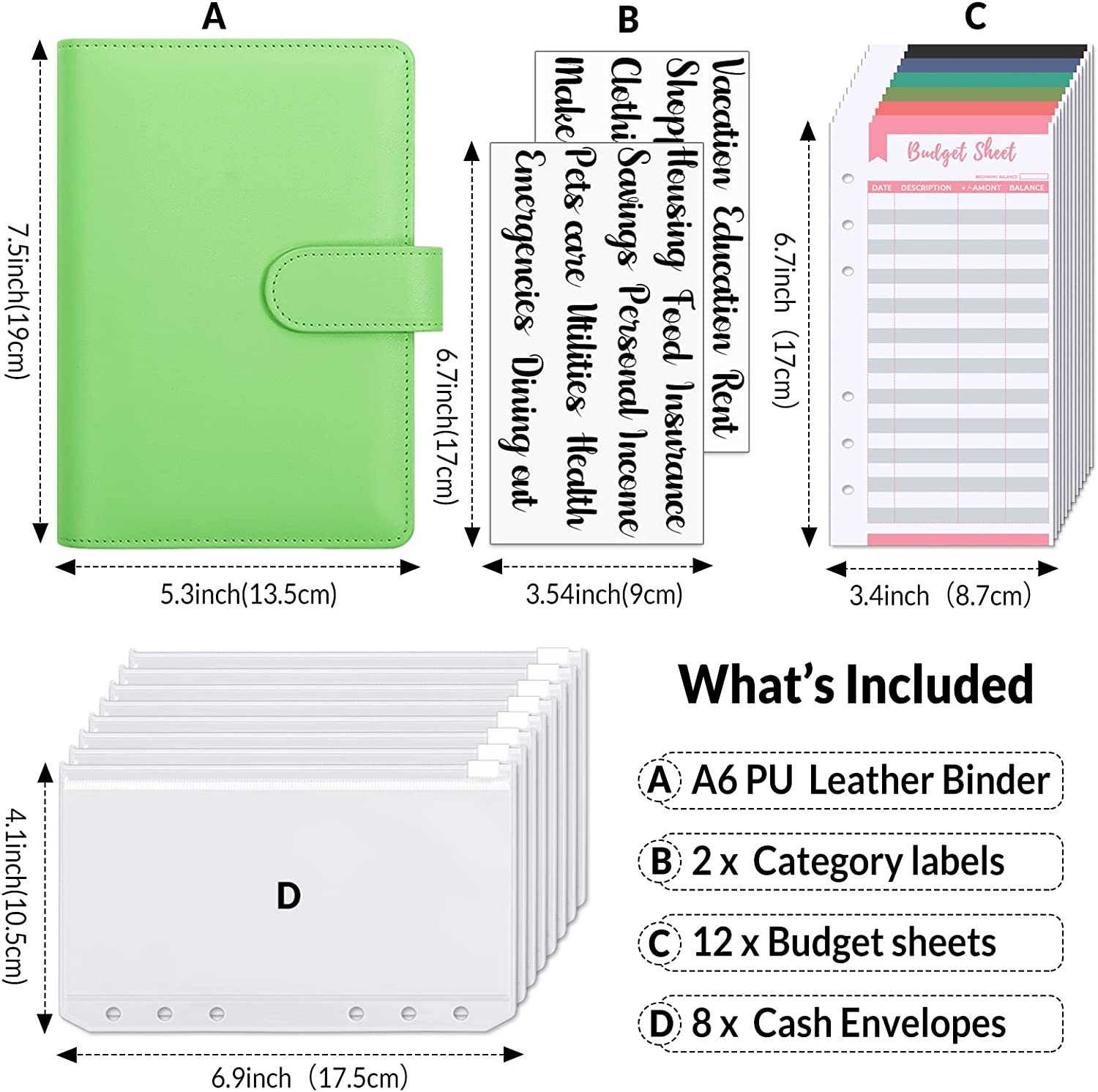 saving binder,8pcs A6 6-holes binder pockets,12pcs expense budget sheets,2