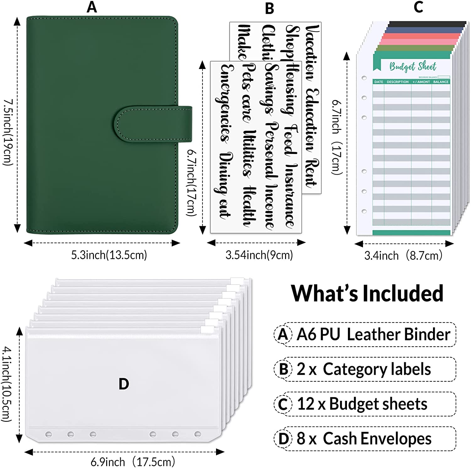 SKYDUE Budget Binder with Cash Envelopes & Expense Budget Sheets - Dark Green