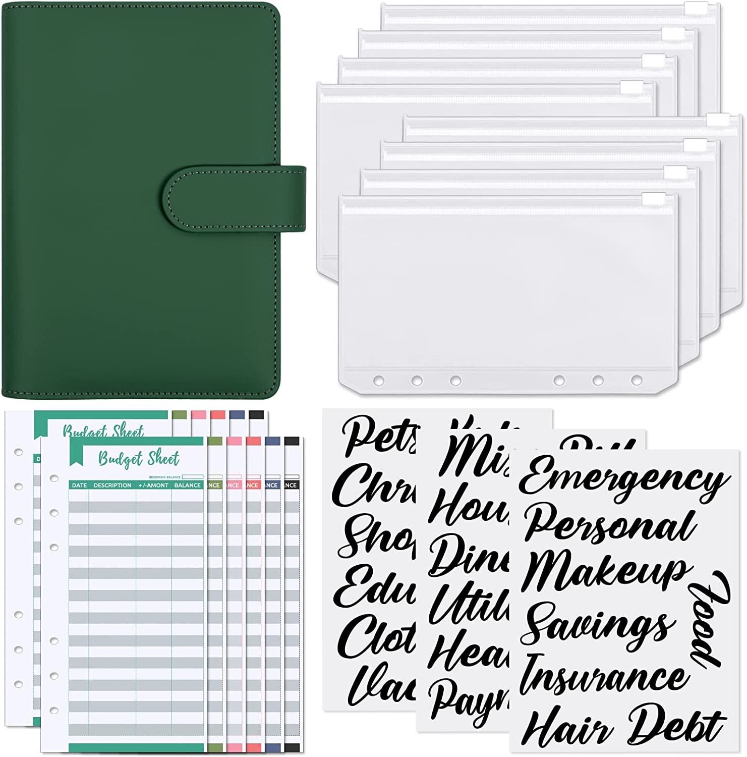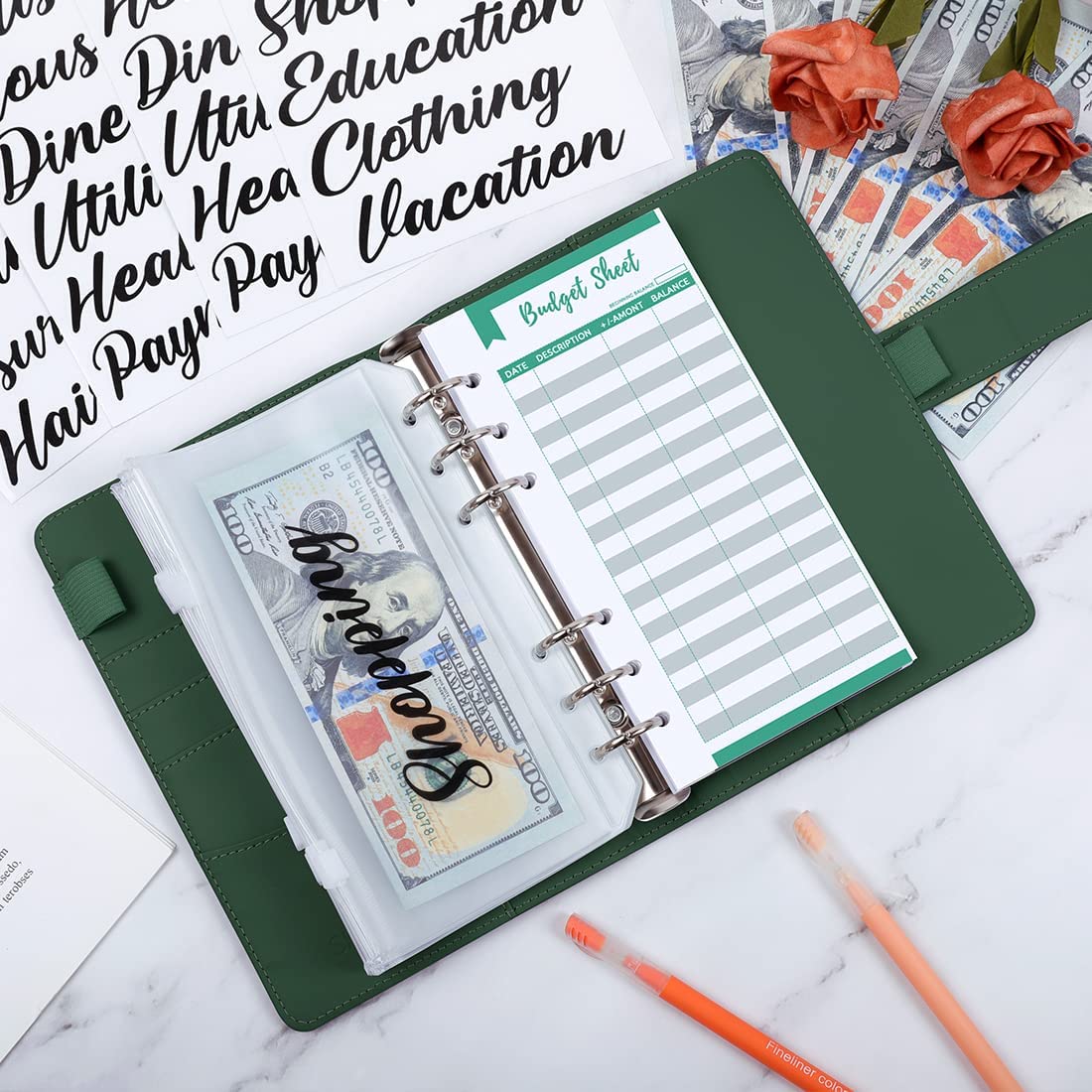 Stickers & Budget Sheet: Money binder with category stickers and budget sheets can help