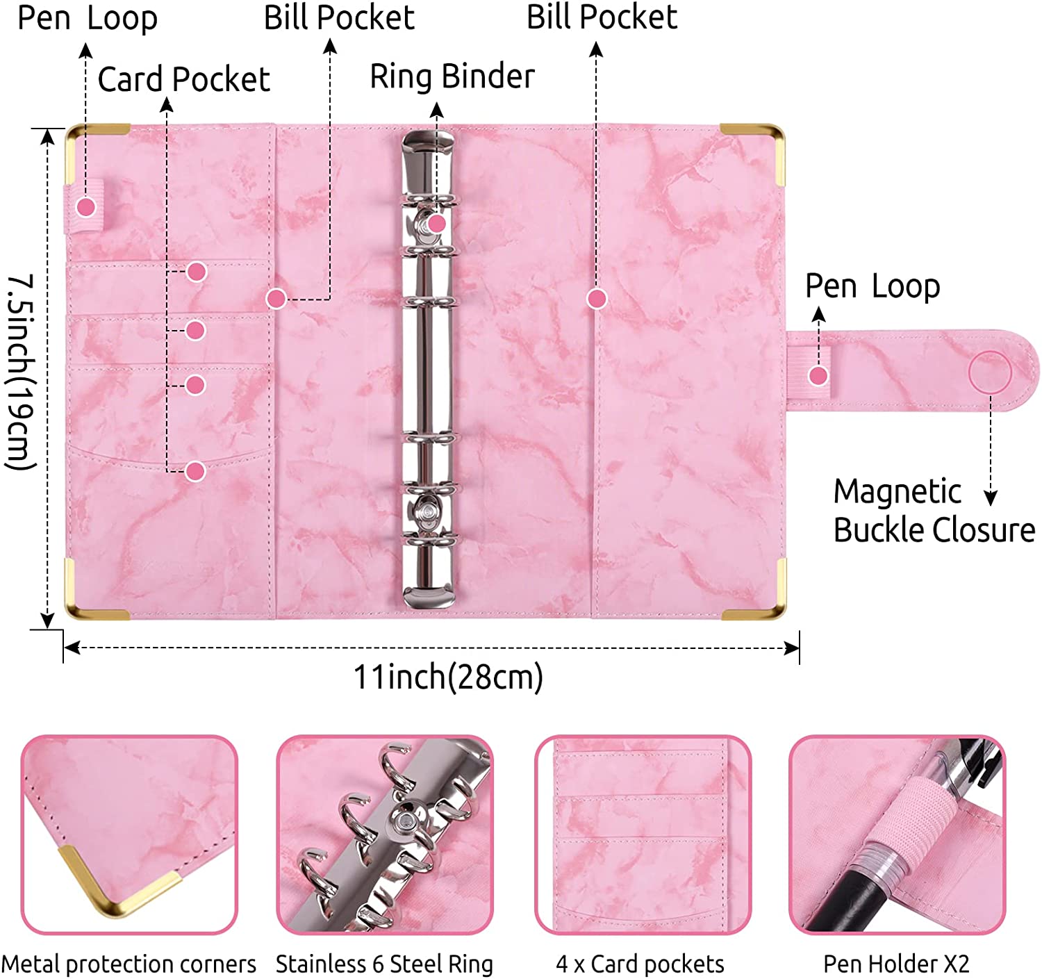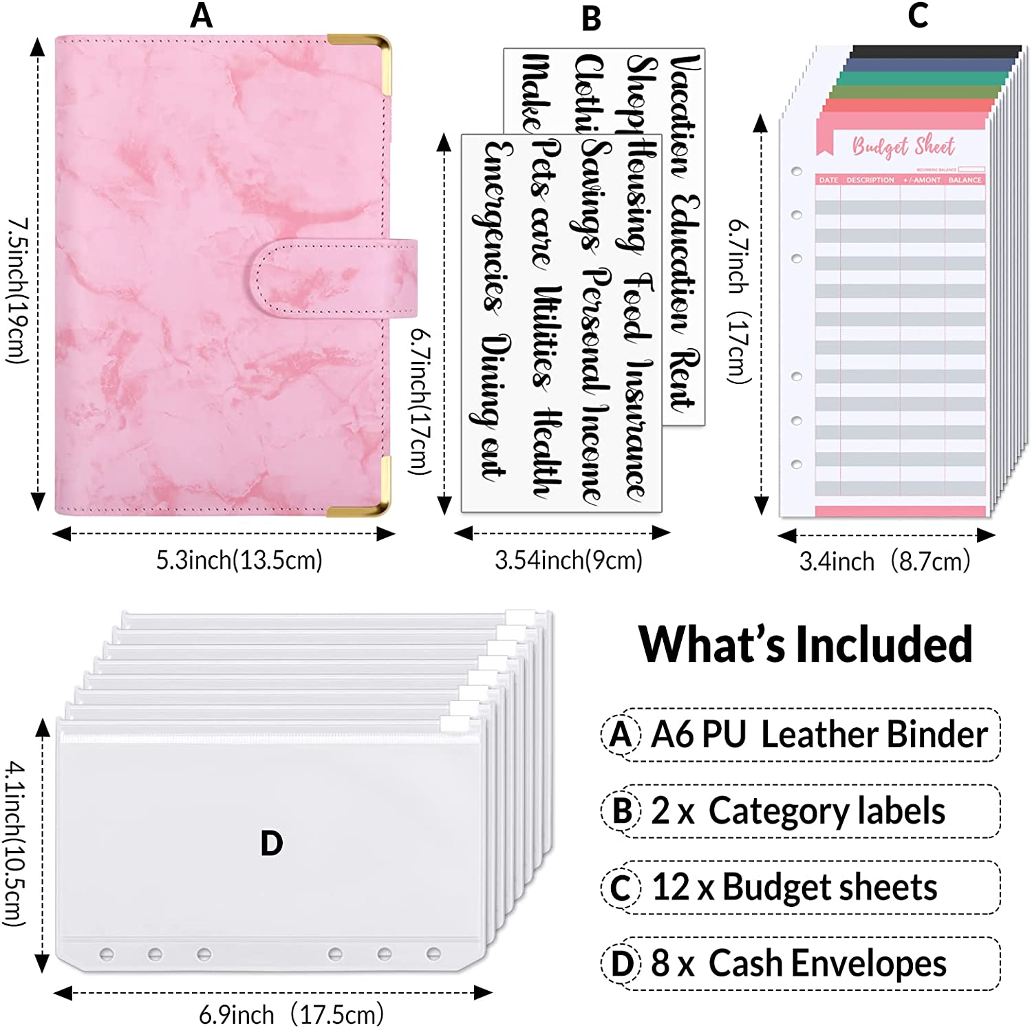 SKYDUE Budget Binder with Cash Envelopes & Expense Budget Sheets - Pink