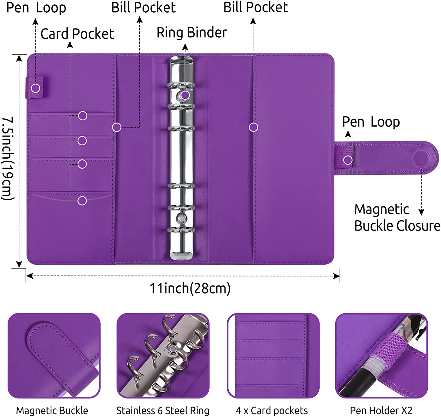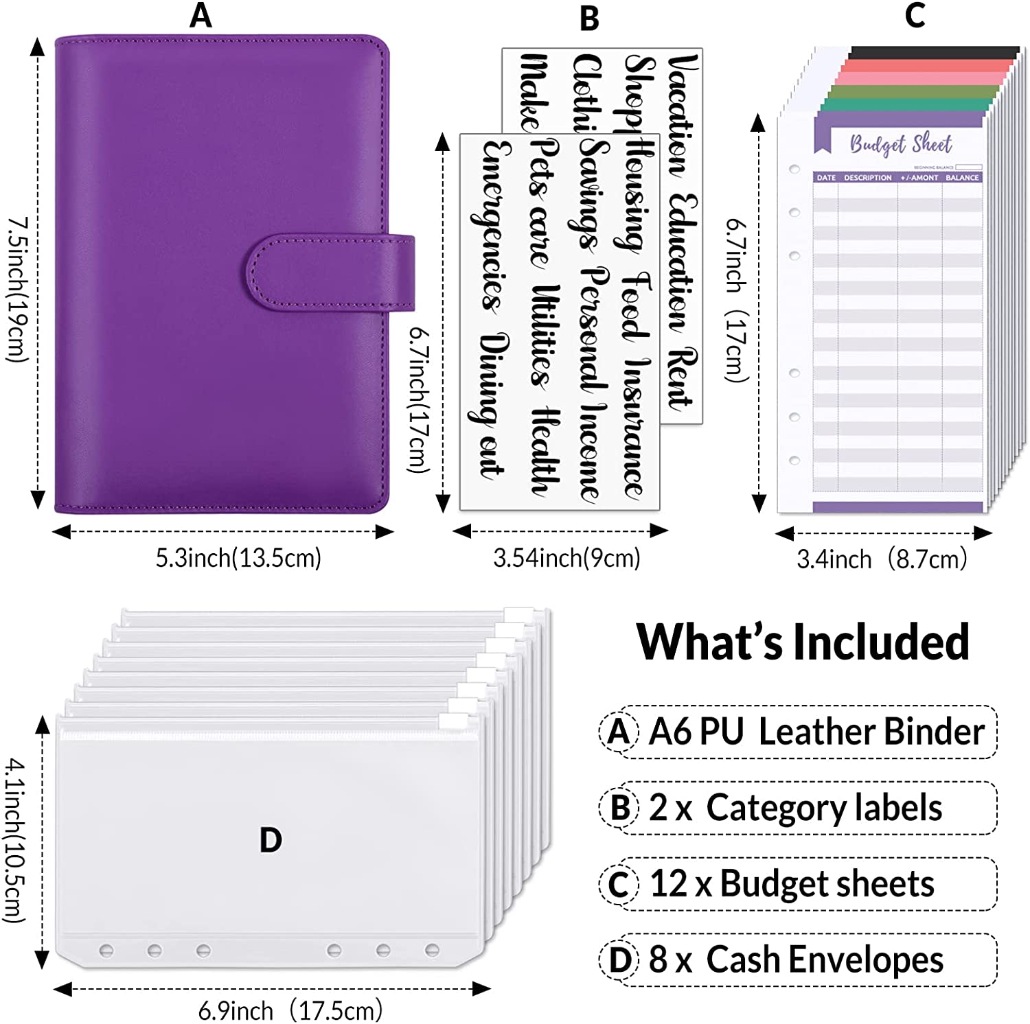 SKYDUE Budget Binder with Cash Envelopes & Expense Budget Sheets - Violet