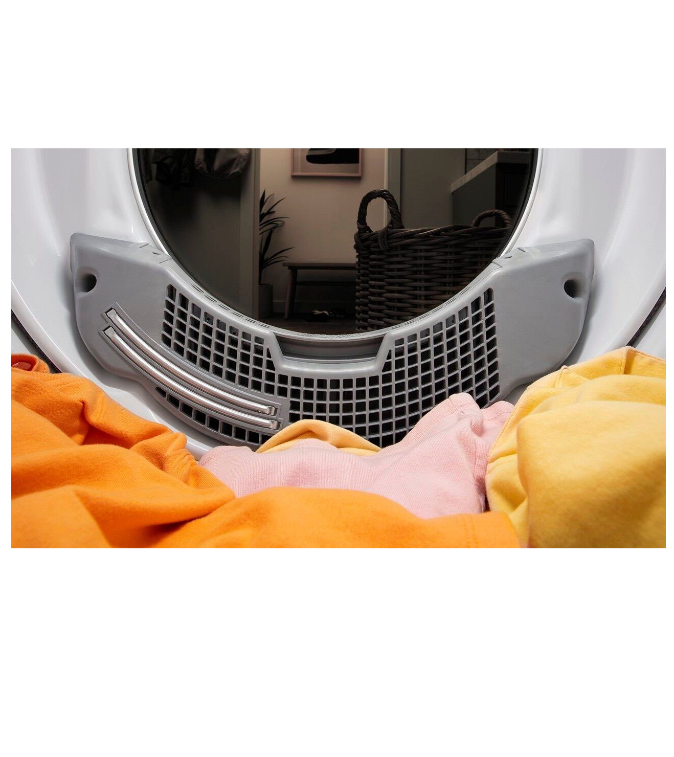 - Four baffles tumble clothes in a randomized pattern, allowing items to open up freely. This helps increase the effectiveness of the dryer for small loads.