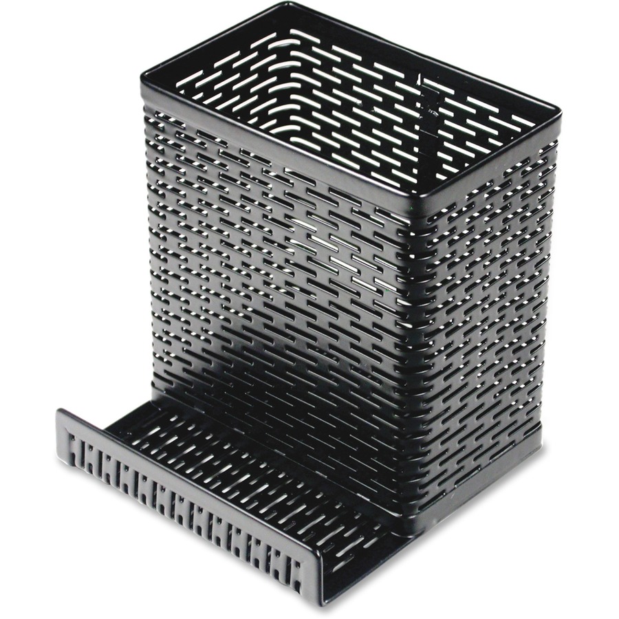 Artistic Punched Metal Pencil Cup & Cell Phone Stand - Perforated Steel