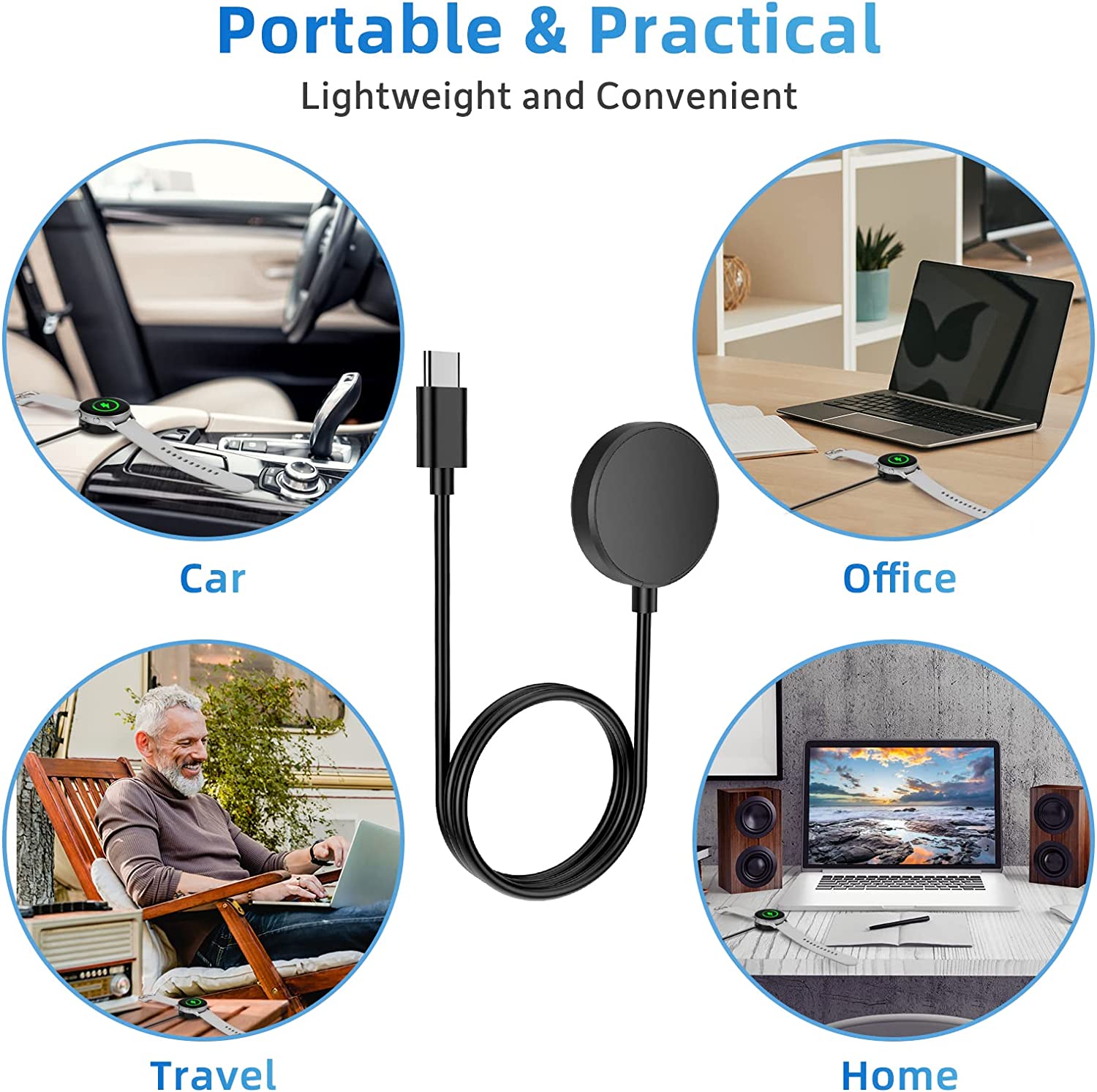 • Compact & Portable - The samsung smart watch charger has a lightweight and slim design, it fits even in your smaller pocket. whether at home or traveling, be your nice on-the-go companion.