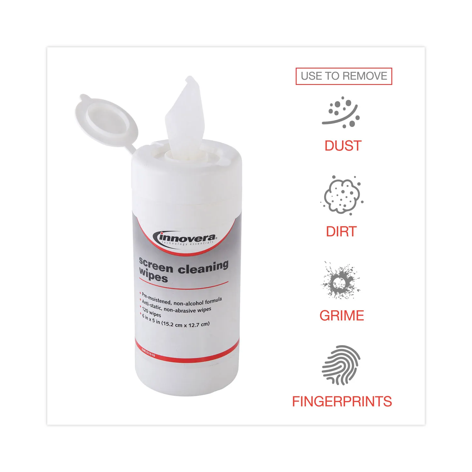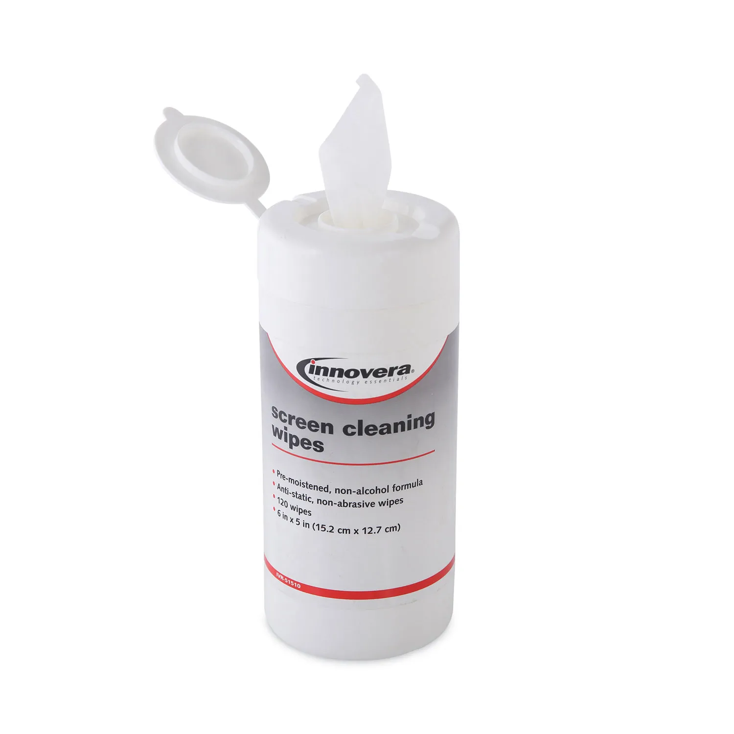 Innovera Antistatic Screen Cleaning Wipes in Pop-Up Tub - Unscented, 120/Pack (Alcohol-Free)
