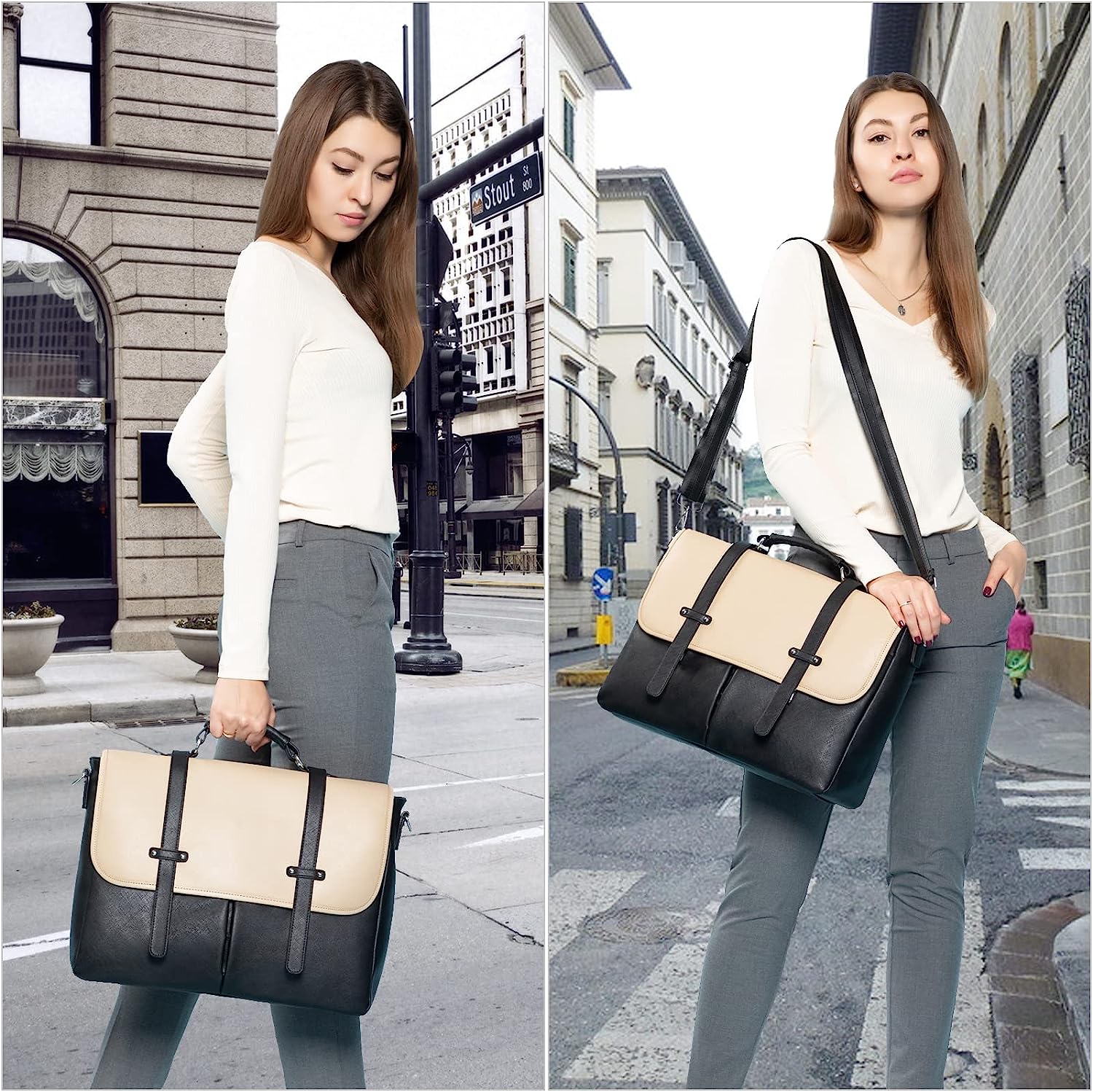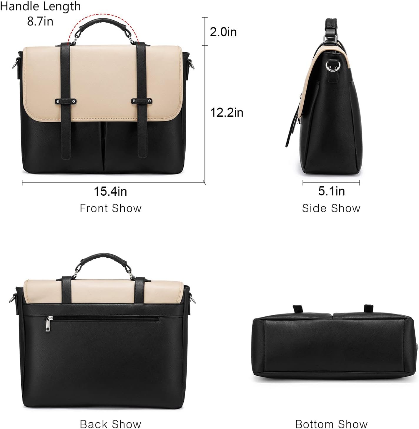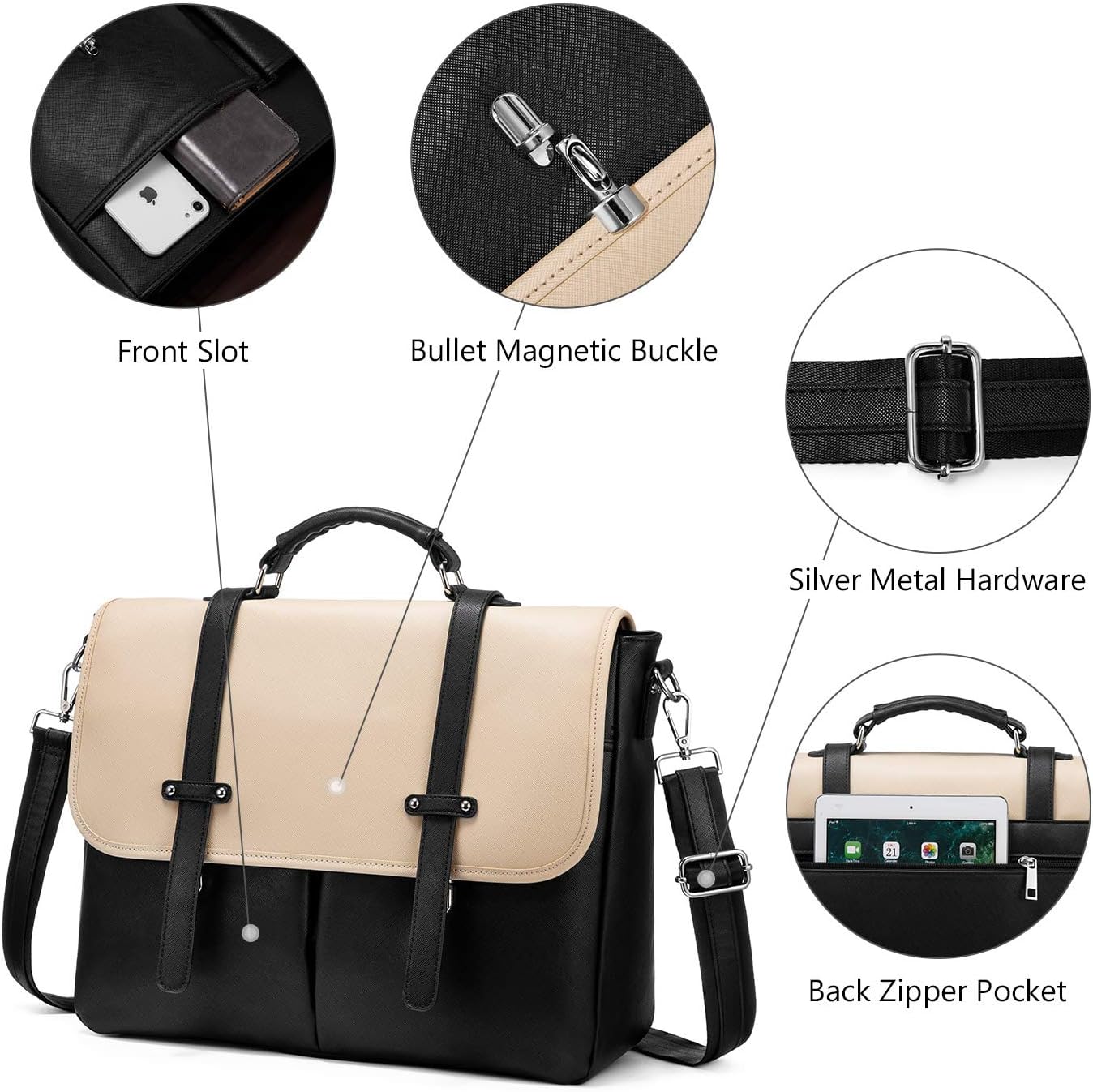 LOVEVOOK Leather Messenger Laptop Bag for Women 15.6 Inch - Black & Beige