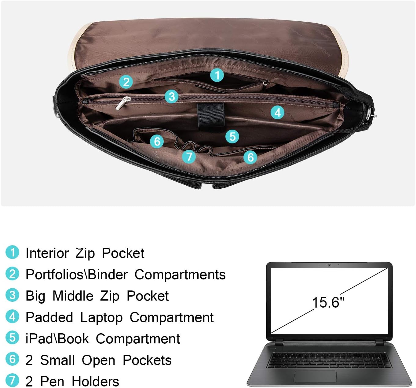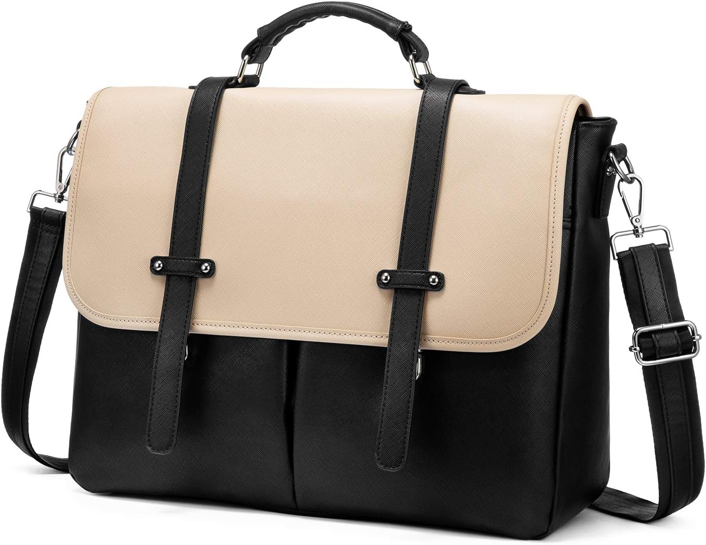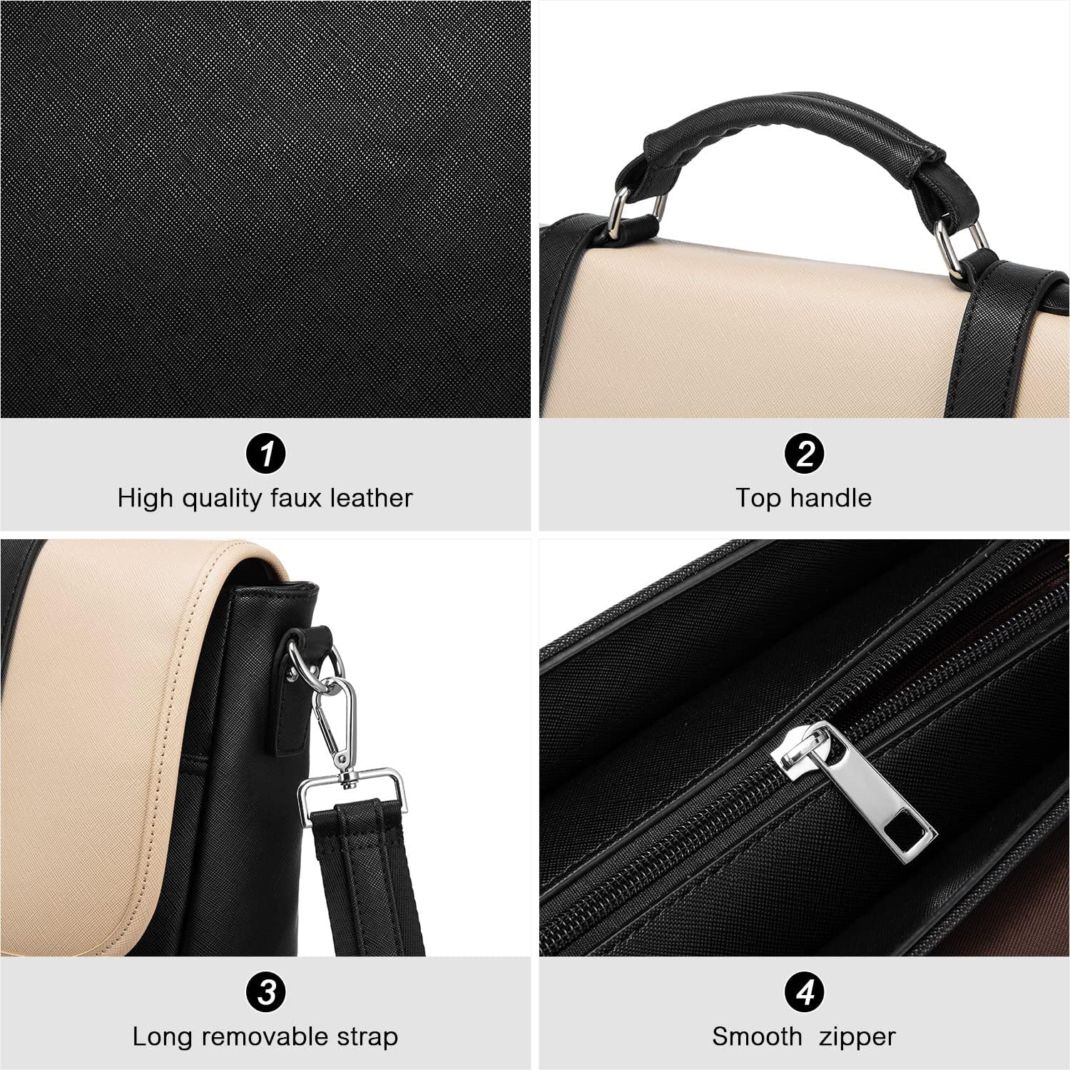 LOVEVOOK Leather Messenger Laptop Bag for Women 15.6 Inch - Black & Beige