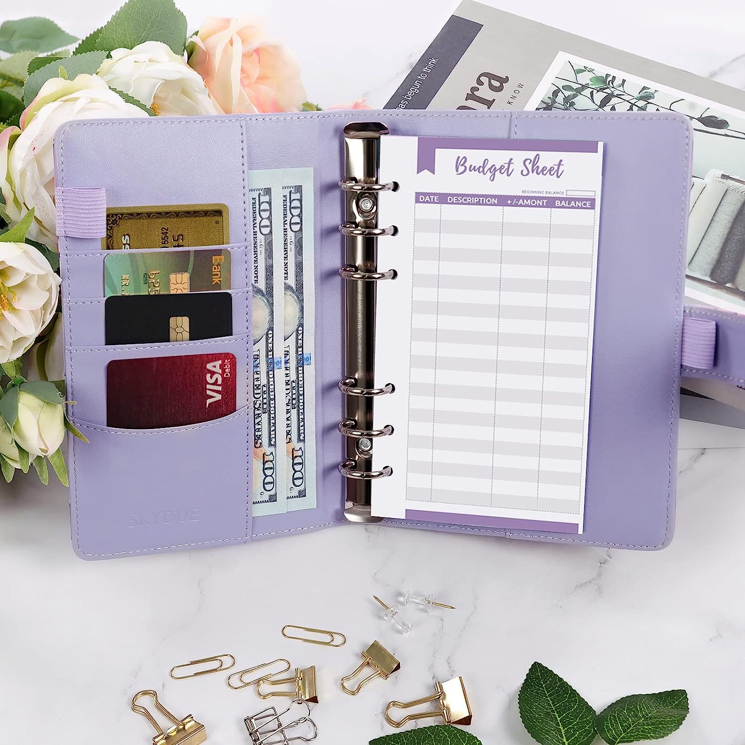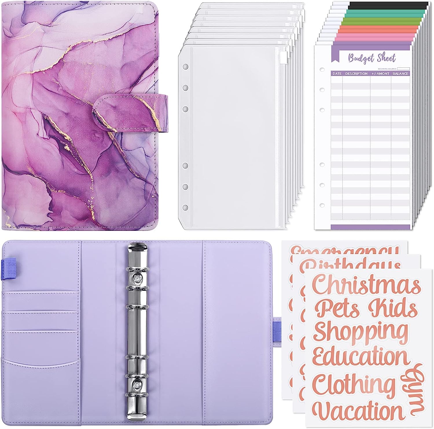 SKYDUE Budget Binder with Cash Envelopes & Expense Budget Sheets - Purple