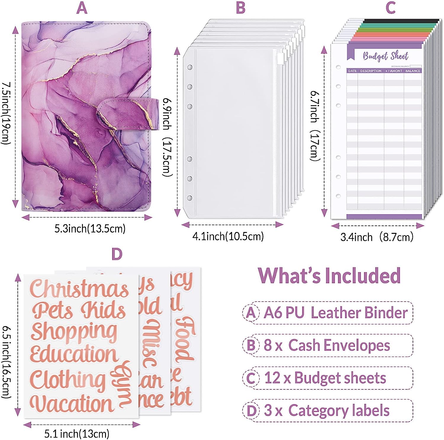 · Category Stickers & Budget Sheet: Money binder with category stickers and