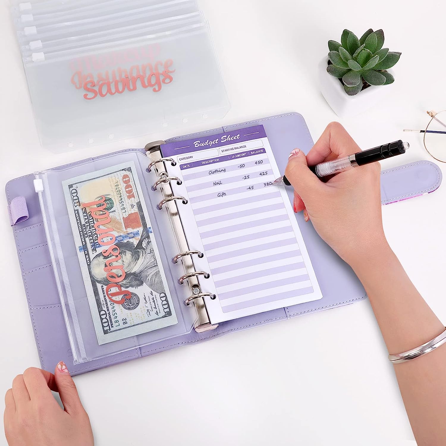 saving binder,8pcs A6 6-holes binder pockets,12pcs expense budget sheets,2