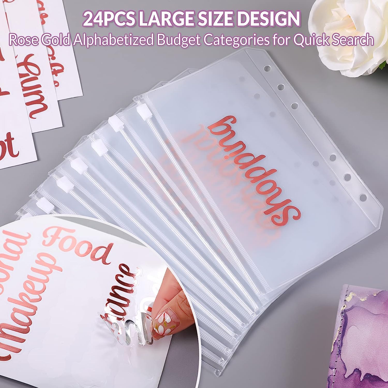· Binder Pockets: 8PCS A6 zipper cash envelope made from