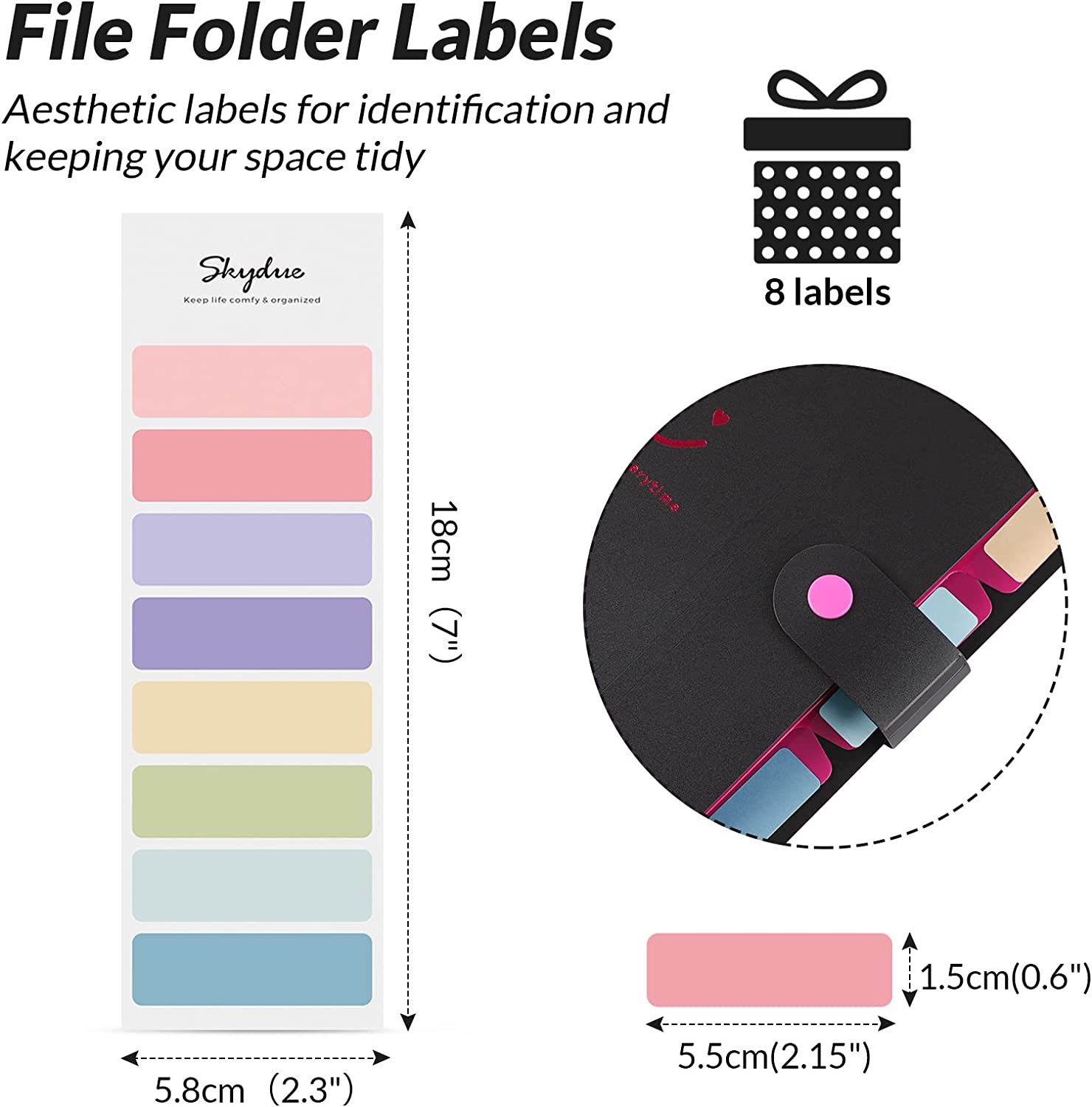 Expanding file folder has 5 expandable pockets. And tab positions for labels,