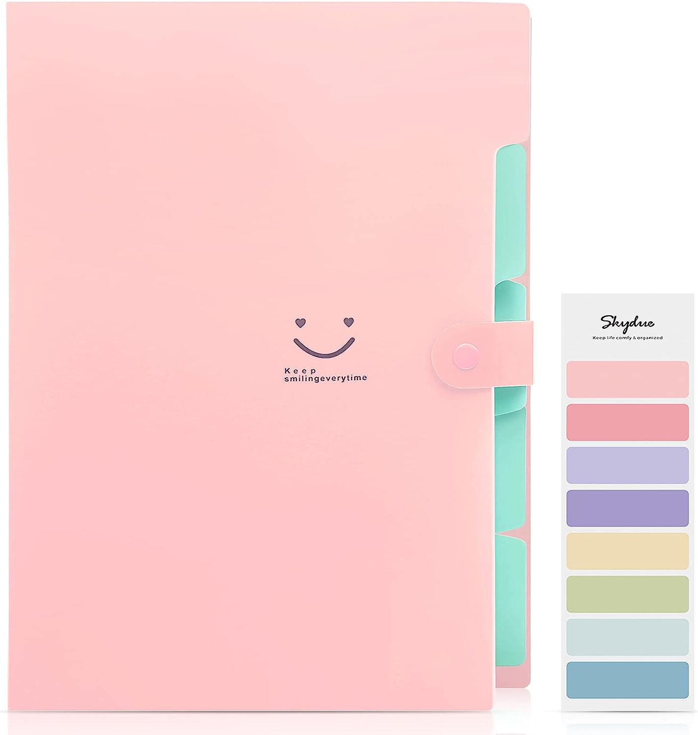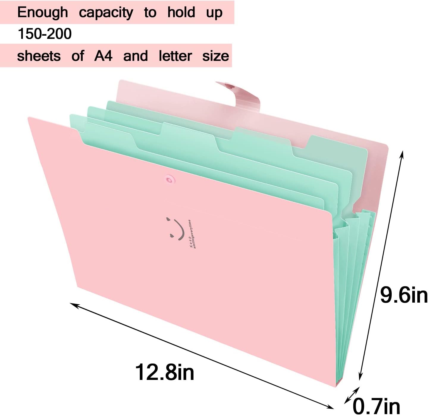 SKYDUE Letter & A4 Expanding File Folder Pockets Accordion Document Organizer - Pink