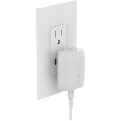 you're traveling or need to add a charging solution to an outlet at home, the BoostCharge 20W USB-C PD Wall Charger from Belkin can recharge your device fast. The single