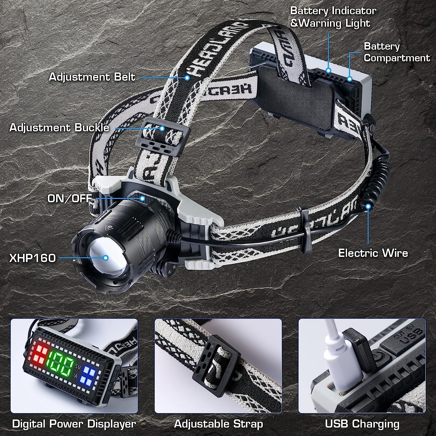 XHP160 LED rechargeable headlamp provides light intensity up to 100,000