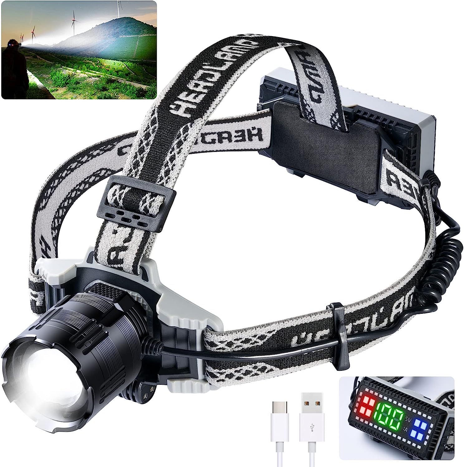 Modes & Zoom Headlamp】BROVAVE LED headlight flashlight has 4 modes:brightness/high