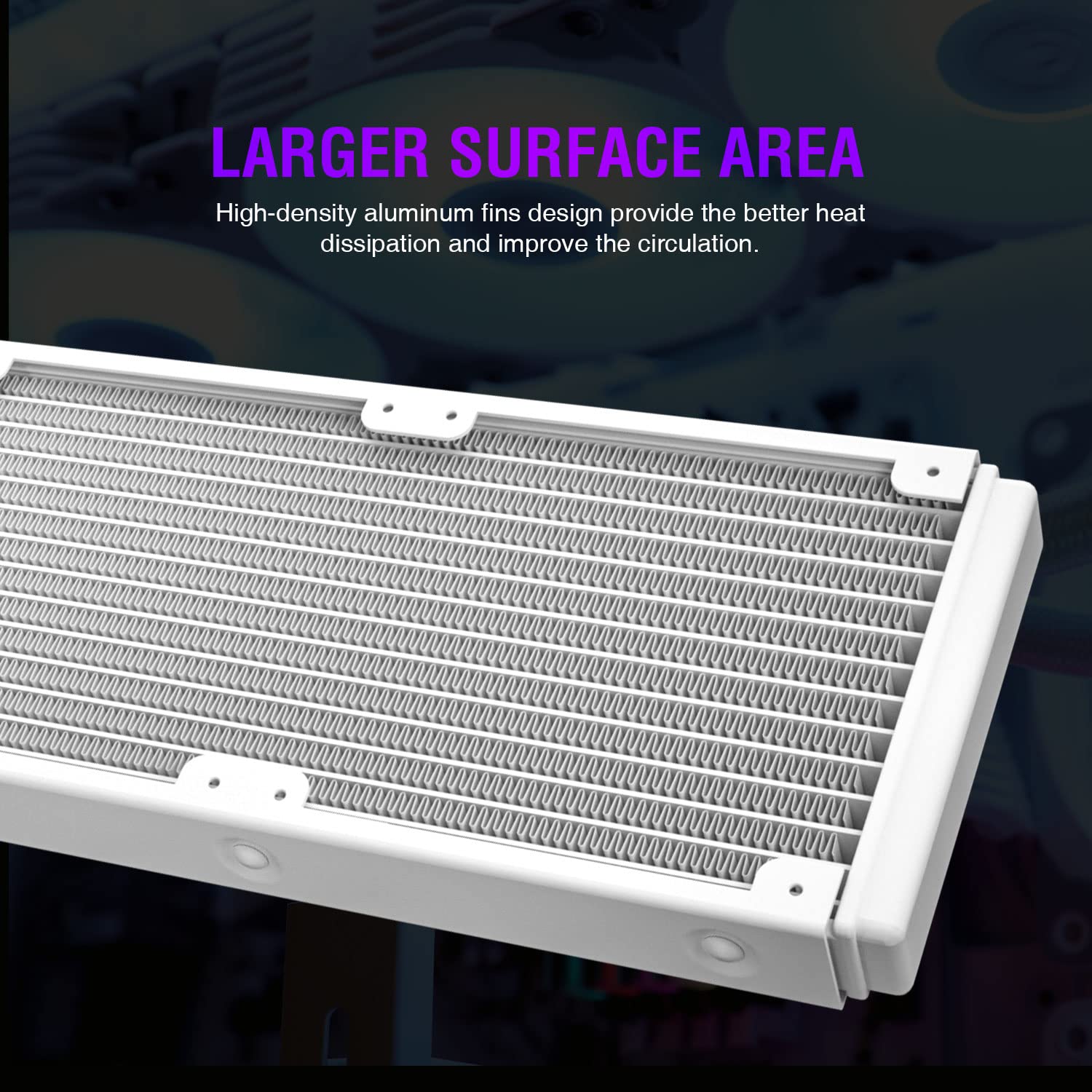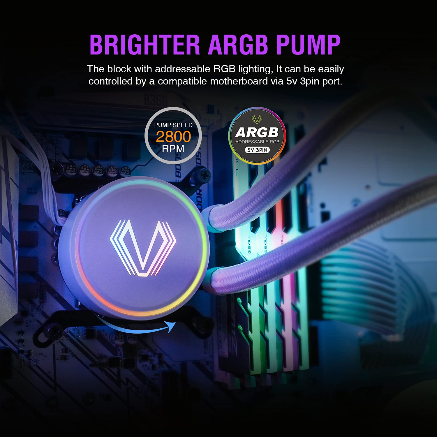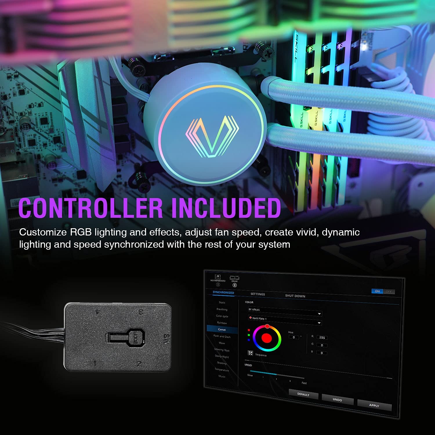 RGB Sync: The Addressabe RGB lighting on the fans and pump can sync with