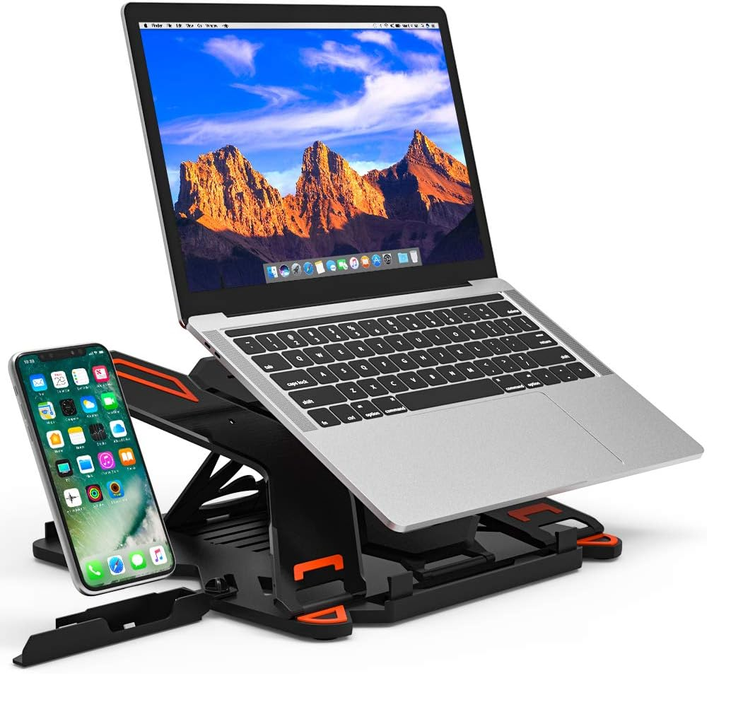 - Stable And Protective: This adjustable laptop stand is made of special plastic materials, it is sturdy, support up to 44 lbs(20kg), no worry any wobble at all; two holders designing on on the bottom part make your latop more stable, rubber pads on the top and bottom secure your laptop in place and prevent any scratches.