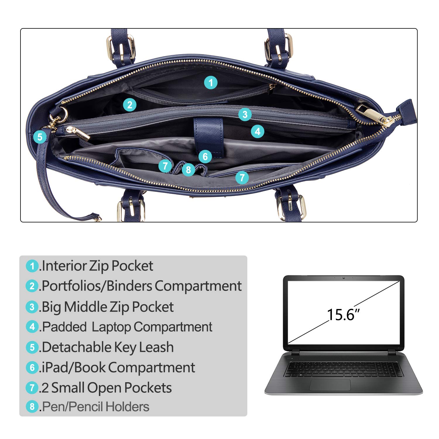 Lovevook Laptop Bag 15.6" Large Office Handbags - Navy