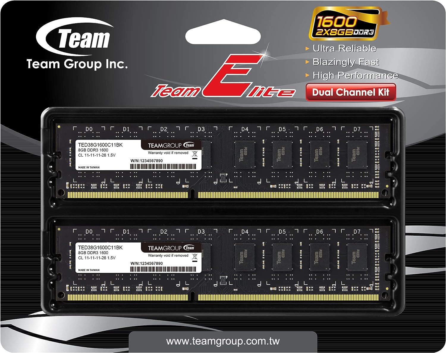 TeamGroup Elite DDR3-1600MHz - PC3-12800 Unbuffered Non-ECC 1.5V RAM 16GB (2x8GB)