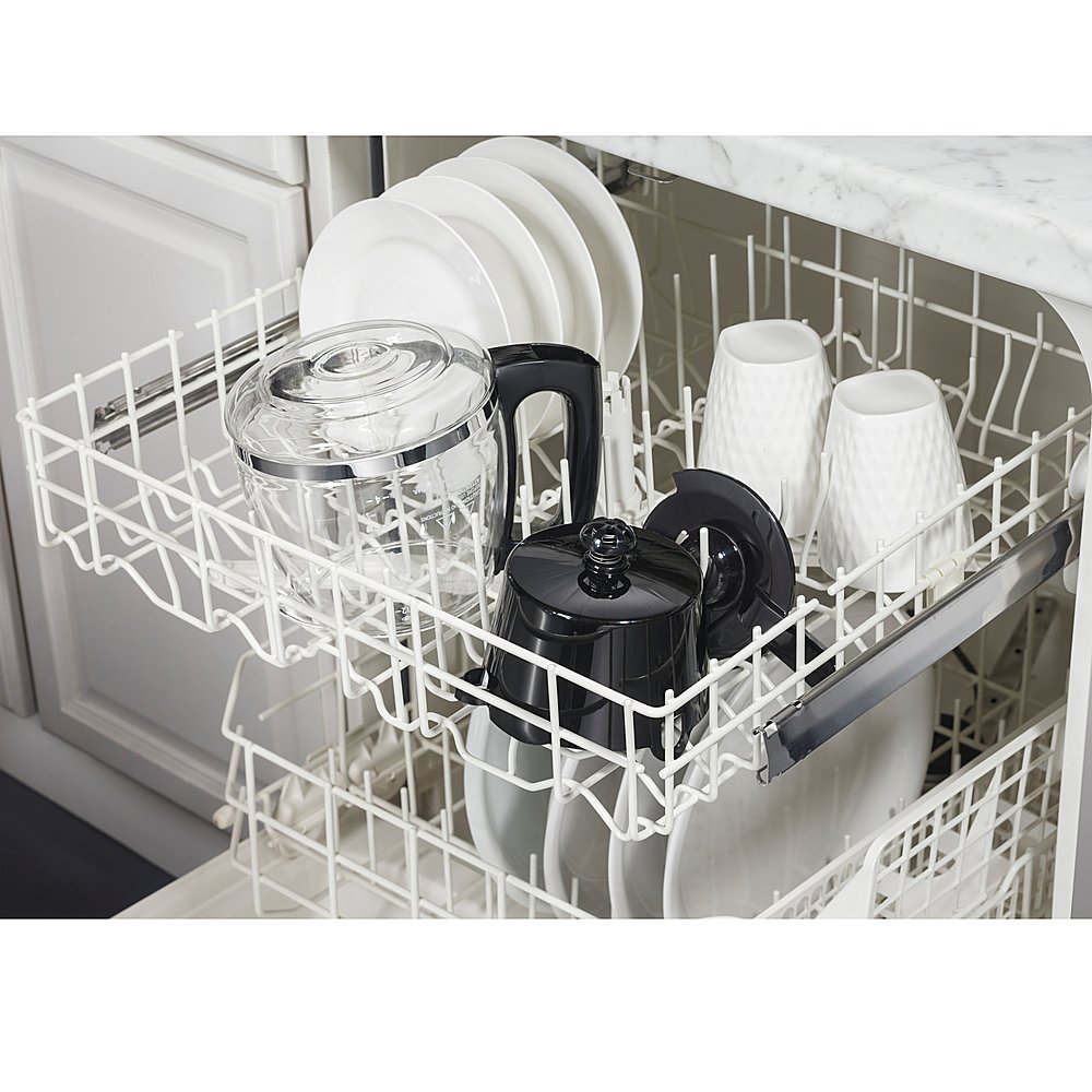 cup glass carafe and removable brew basket are dishwasher safe for easy