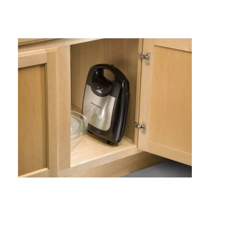 upright storage allows the waffle maker to fit easily into the cupboard or