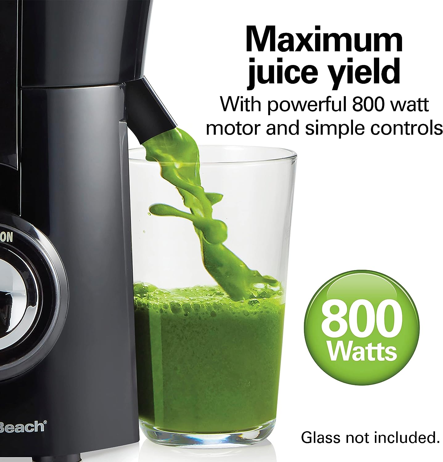 - MAXIMUM JUICE YIELD: Juice everything from apples and celery to dense beets and leafy greens. The powerful 800 watt motor ensures maximum juice yield for less waste and more flavorful juice, and the simple on/off button is easy to use.