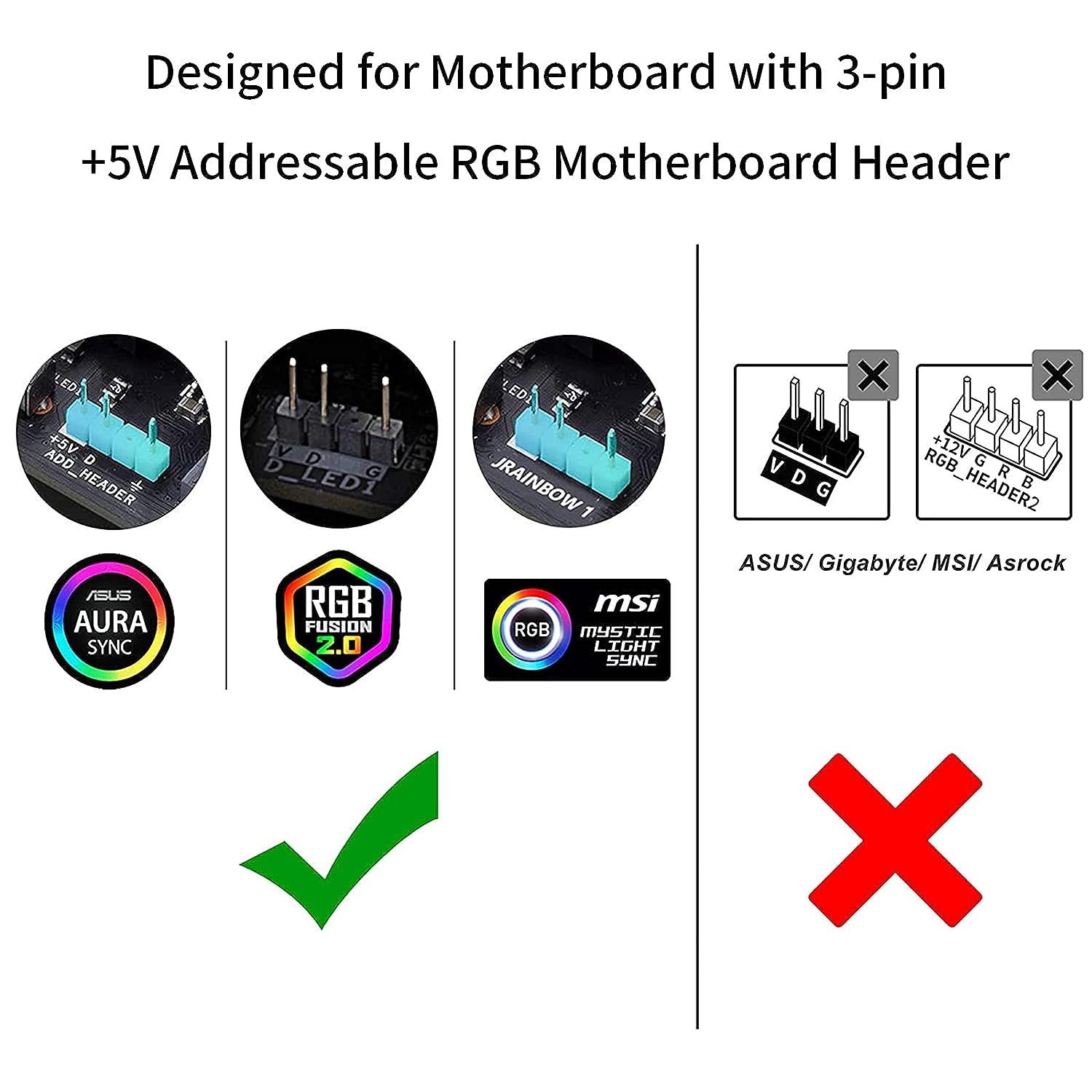 male pins. Compatible with ASUS, MSI, GIGABYTE and ASROCK addressable RGB
