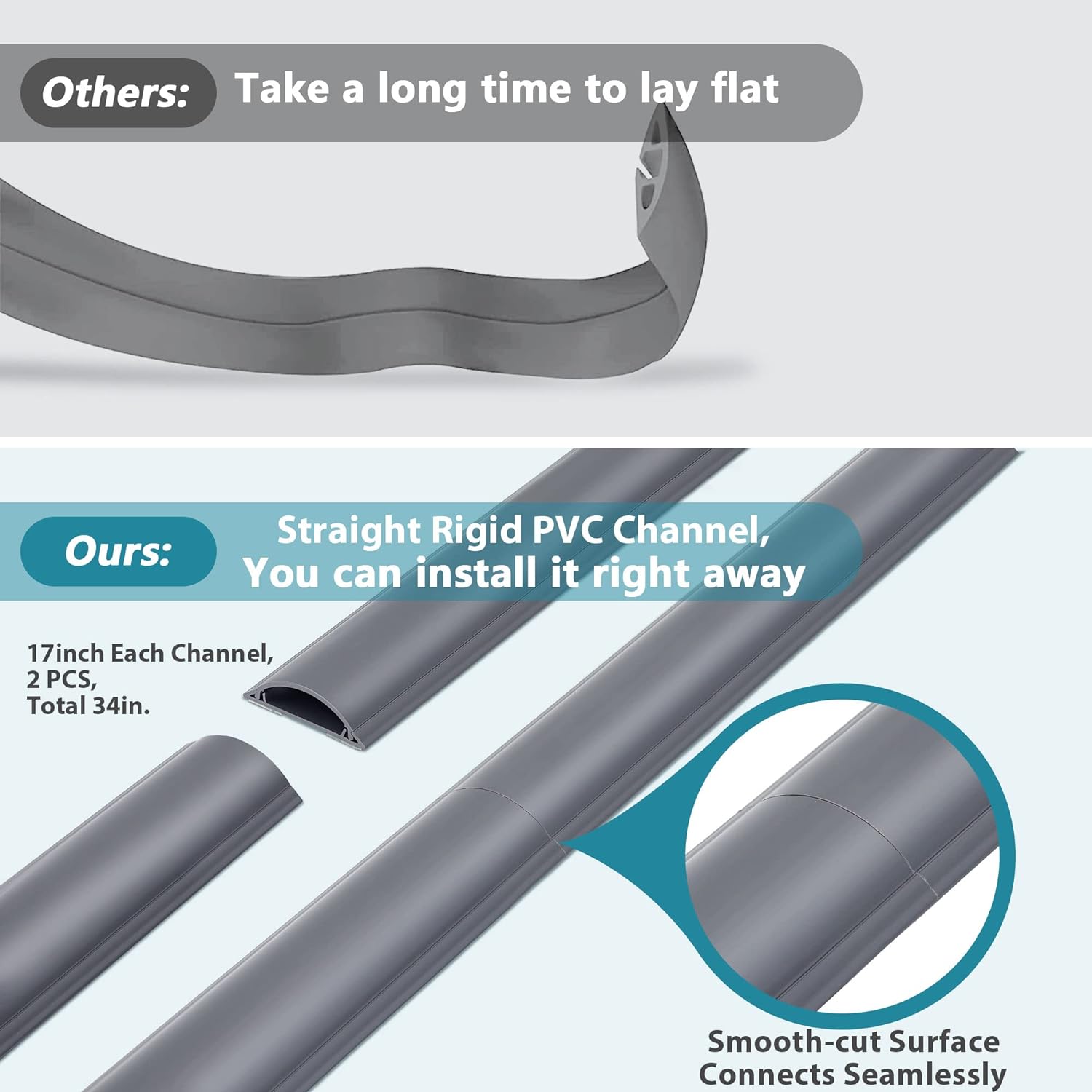 Floor Cord Cover: 2x17in, Total 34in; Smooth-cut Surface. Seamless connection.