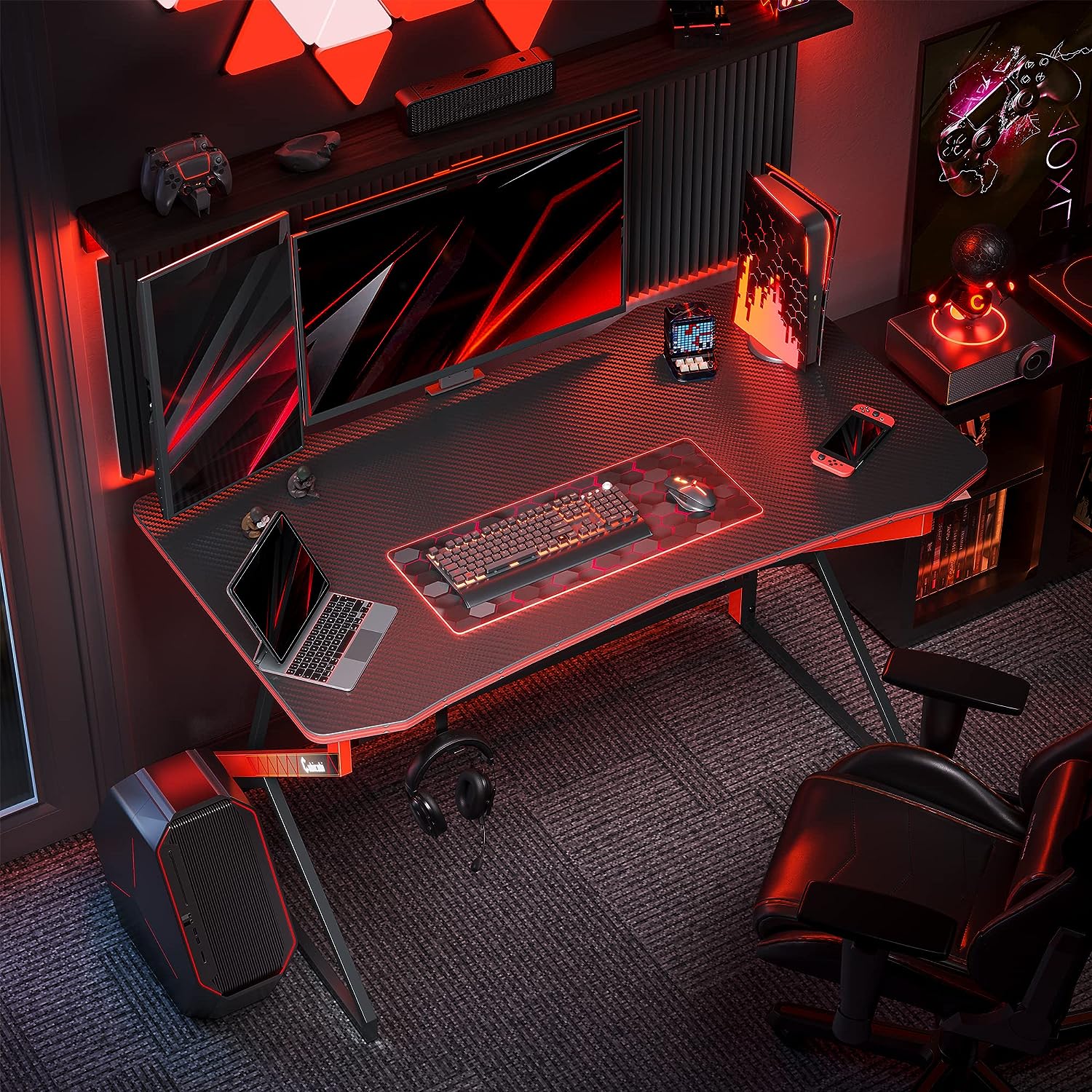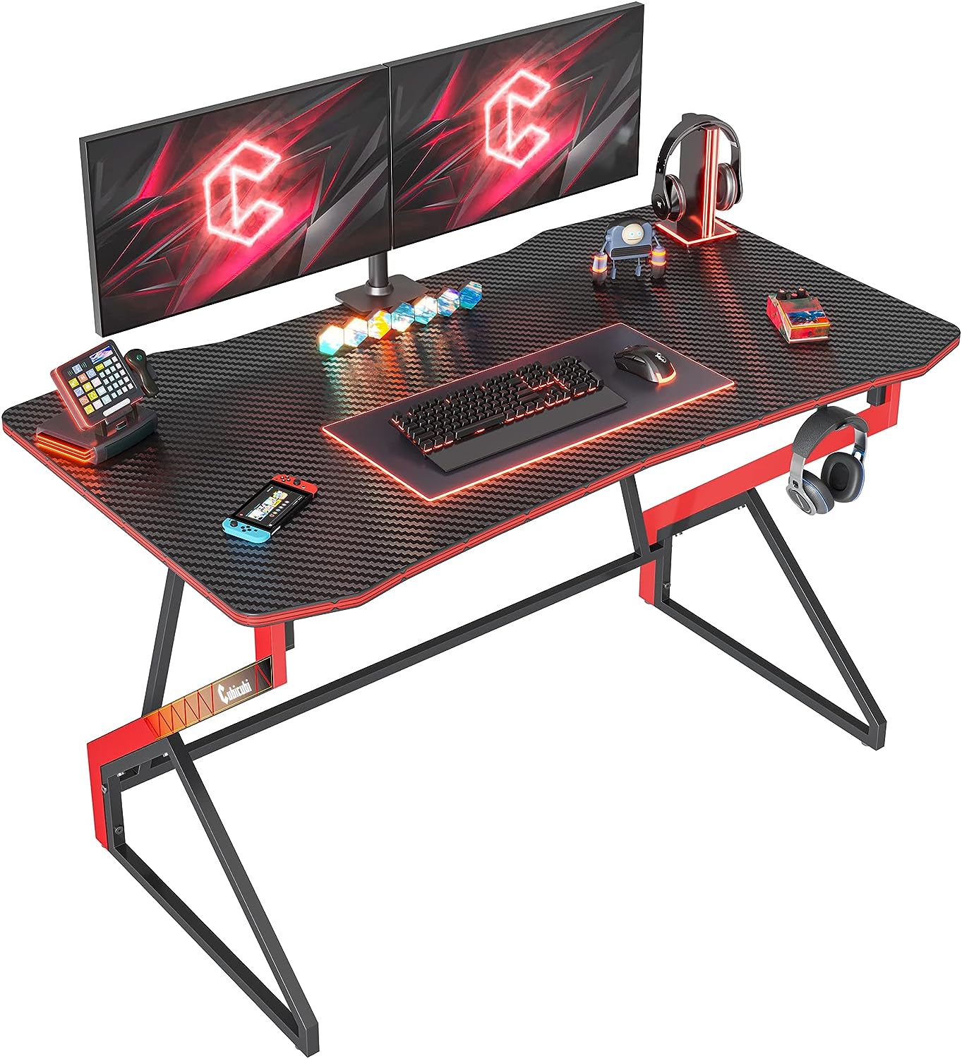 CubiCubi Gaming Desk Z Shaped 47 inch - Carbon Fiber Surface with Headphone Hook