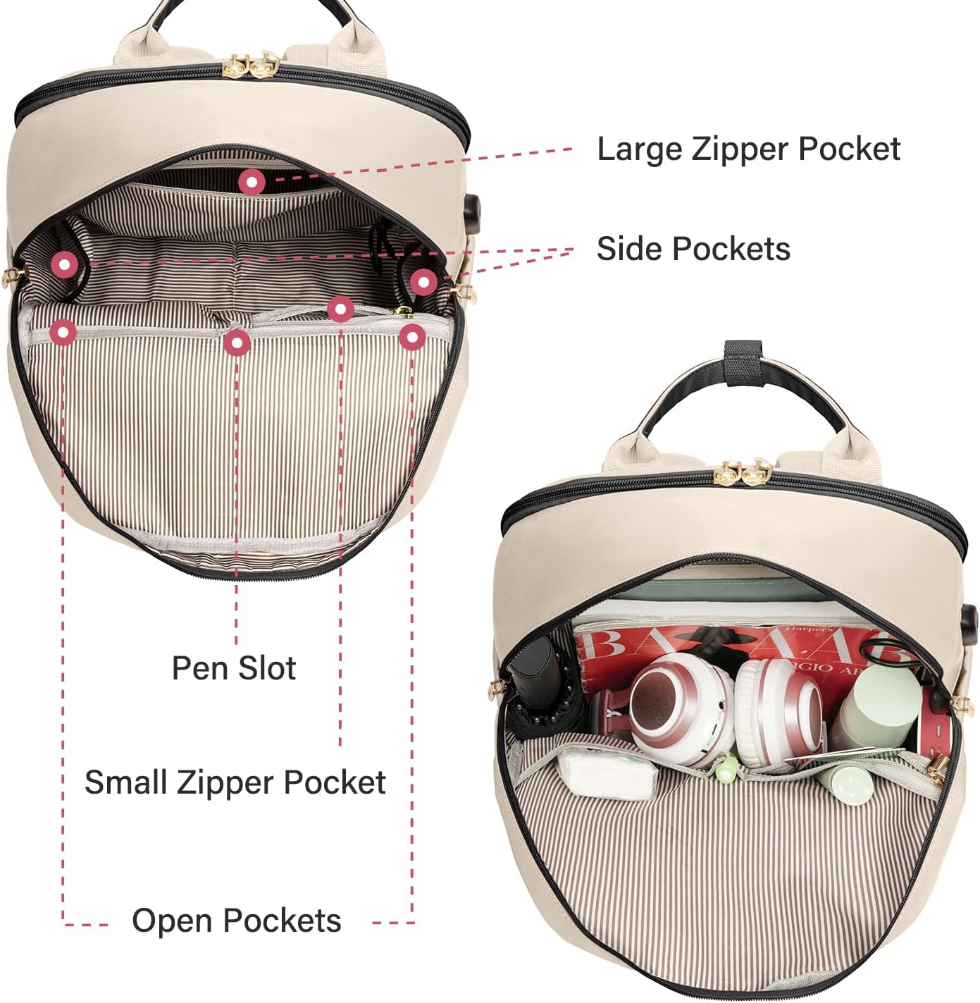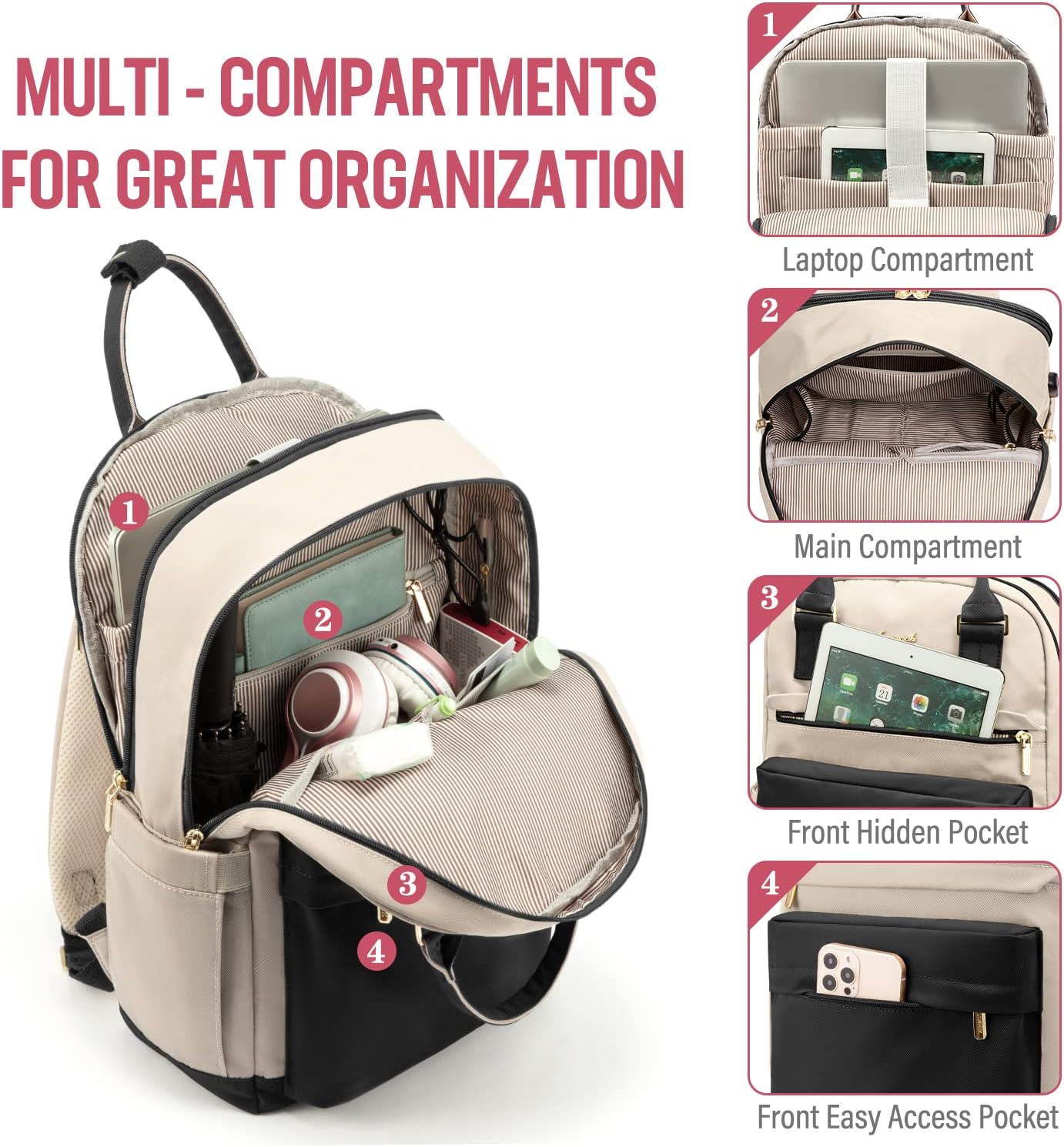 LOVEVOOK Laptop Backpack 15.6 Inch with USB Charging Port - Beige & Black