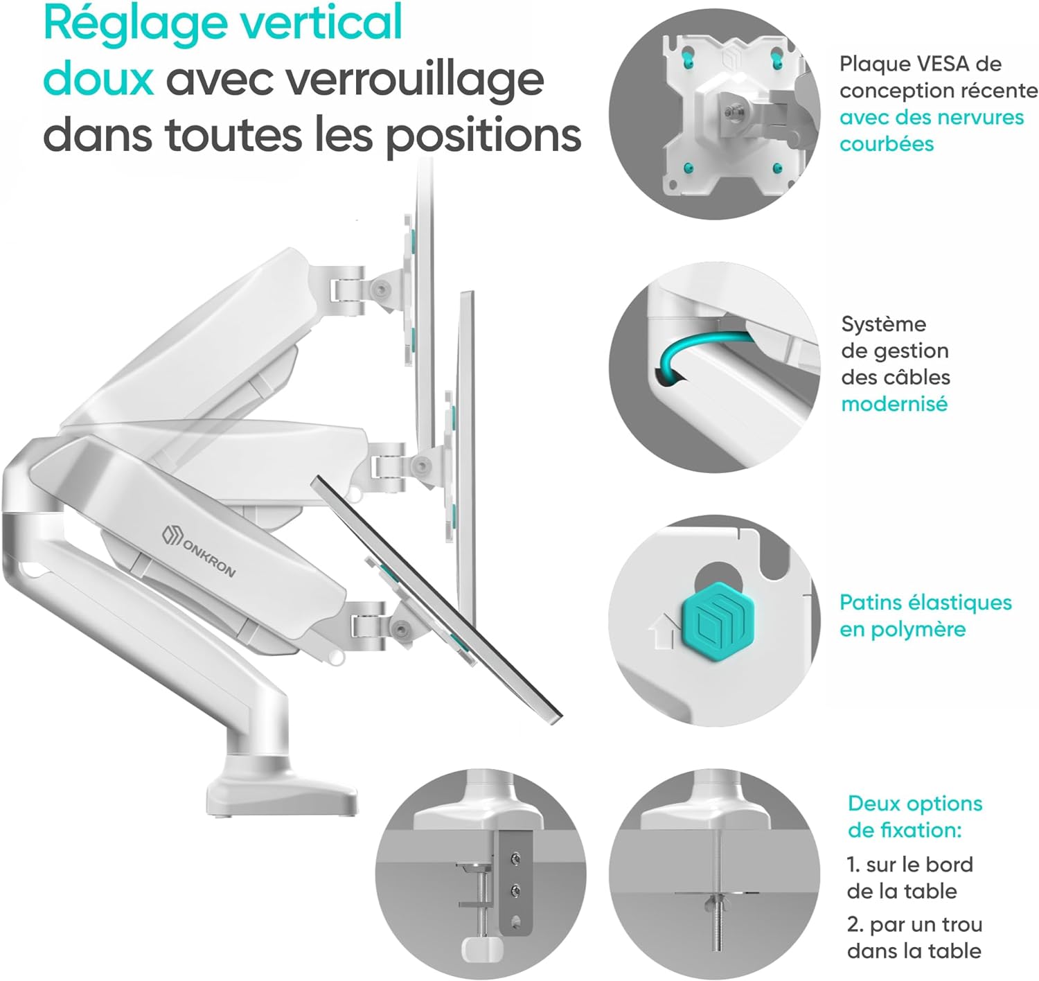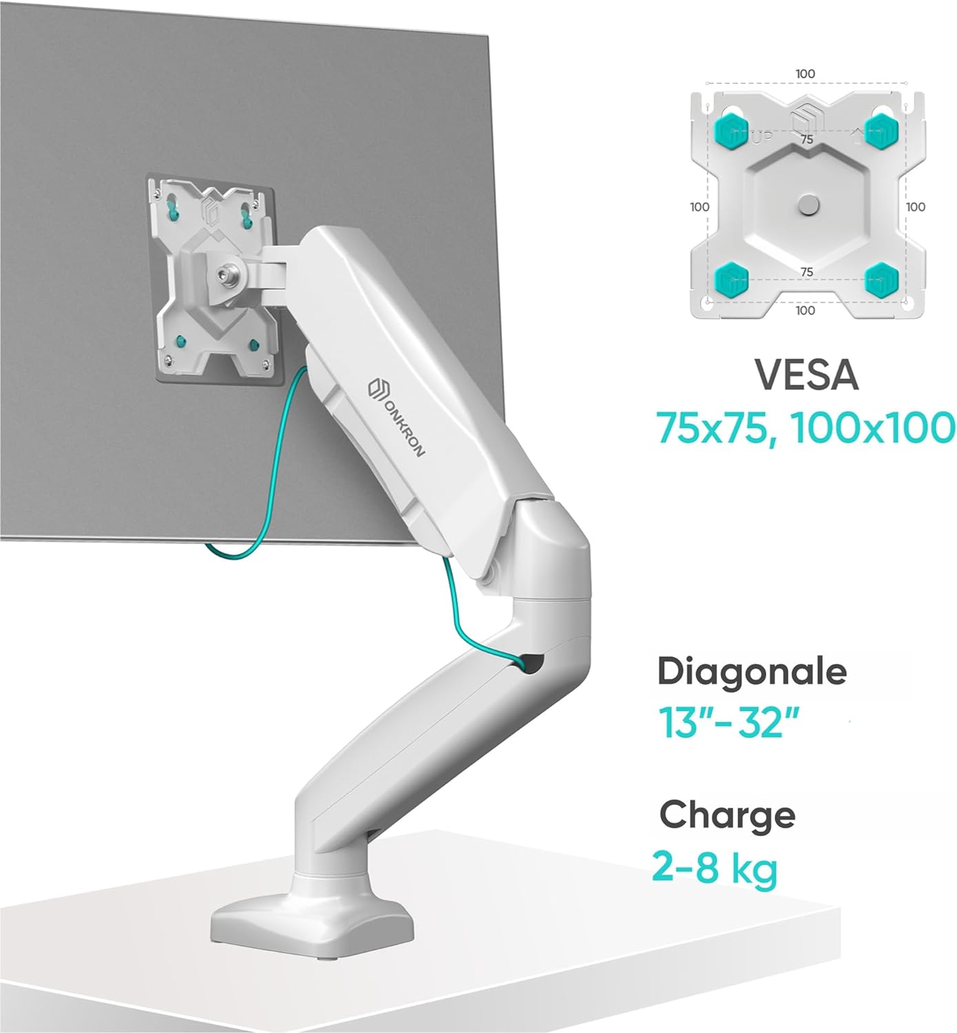 Advantages of screen holder white: tiltable -45° ~ +90°, VESA 75 x 75 mm and 100 x 100 mm, 180°