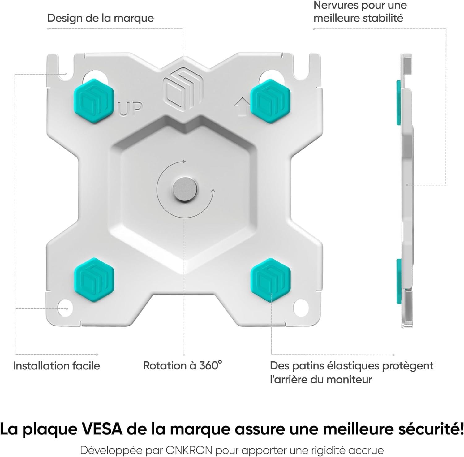 the base. Step 3: Attach the monitor to the VESA plate, which can be mounted