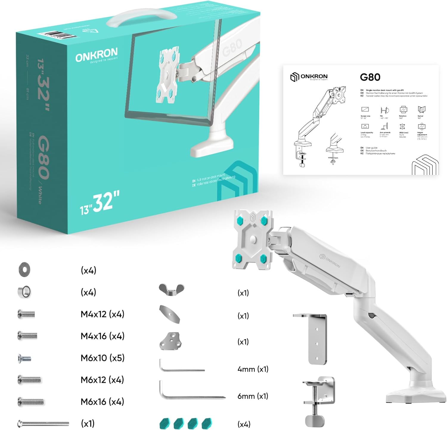 Onkron G80 Single Monitor Mount - Swivel Tilt for 13-32 Inch Displays