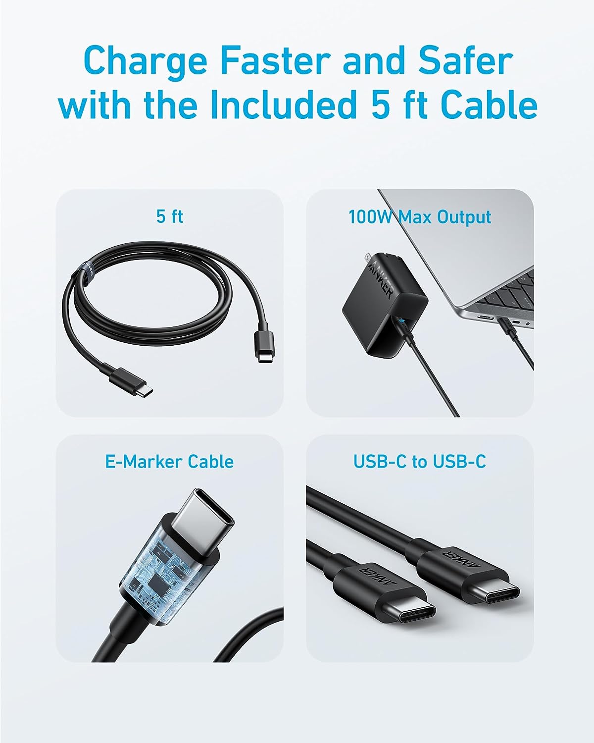 Anker 100W USB-C Fast Charger for MacBook Air & Pro, Samsung Galaxy, iPad Pro - 5 ft. USB-C to USB-C Cable Included