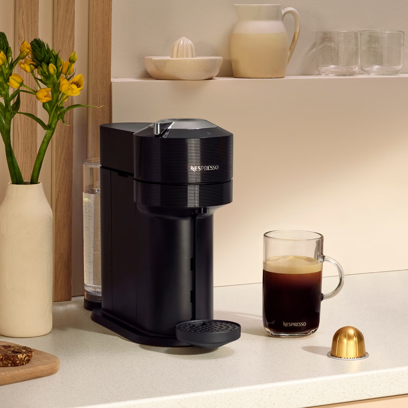 Arabica and Robusta coffees give rich warmth to this light-roast large cup. Taste toasted cereal and sweet caramel notes balanced by a fruity touch.