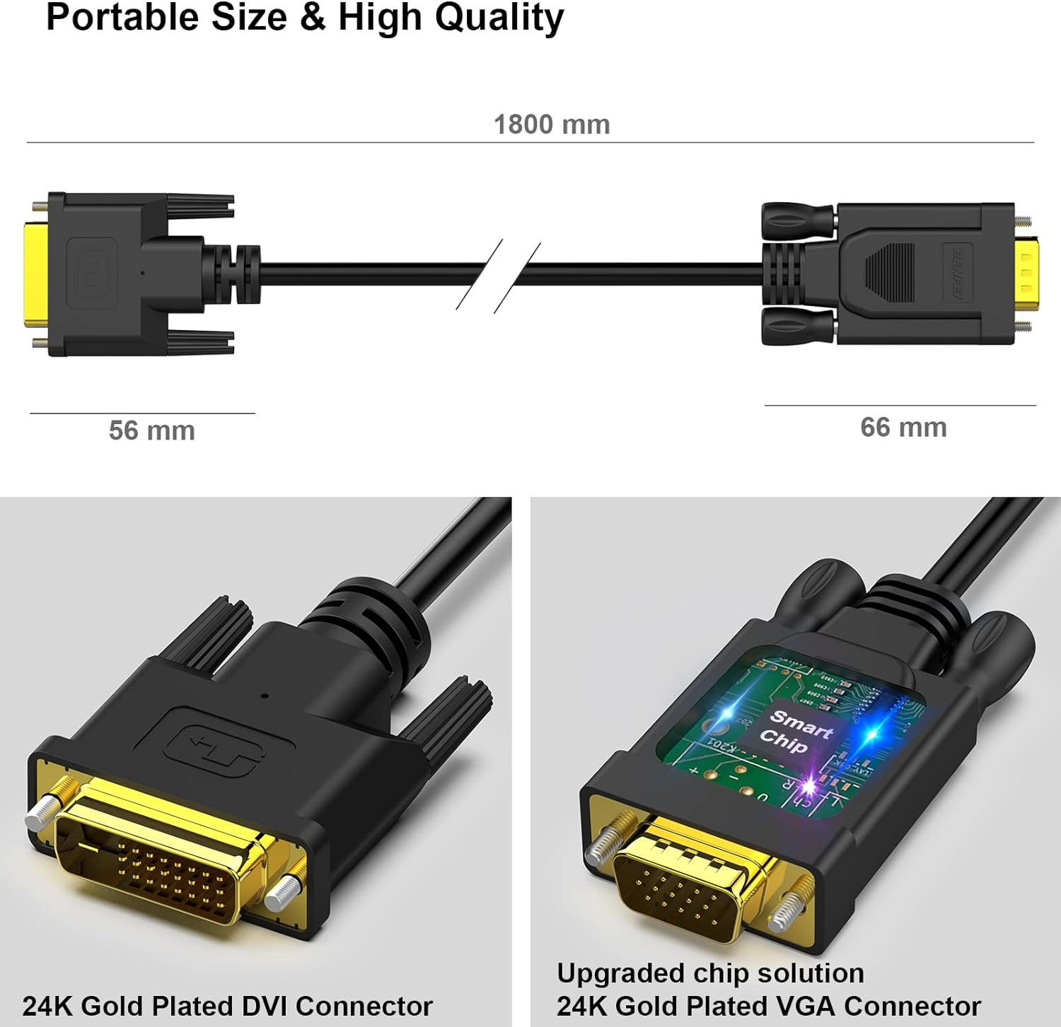 Active DVI-D to VGA, Benfei DVI-D 24+1 to VGA 6 Feet Cable Male to Male Gold-Plated Cord