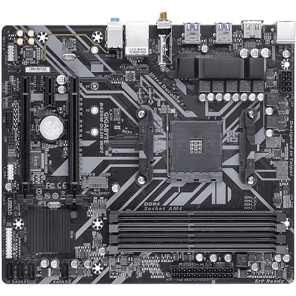 Get your gaming build off on the right foot with the B450M DS3H WIFI AM4 Micro-ATX Motherboard from GIGABYTE. Sporting a Micro-ATX form factor, this motherboard gives you the utility of larger boards in a smaller package, ideal for builders who wish to focus on gaming components.